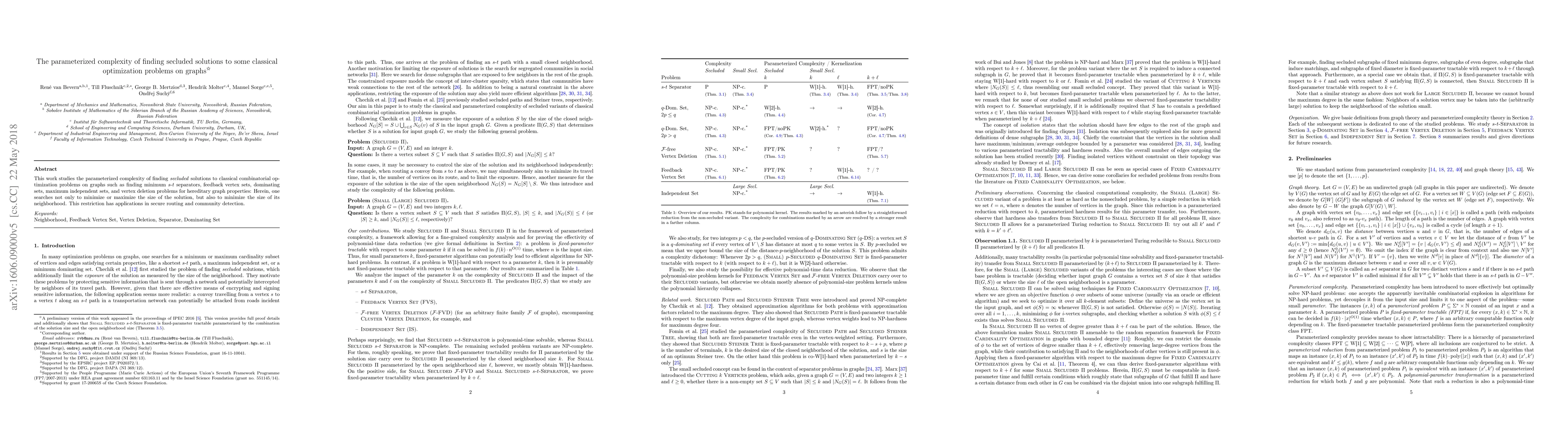 This paper investigates the parameterized complexity of finding secluded solutions to classical graph optimization problems, aiming to minimize both the solution size and its neighborhood size, with applications in secure routing and community detection.