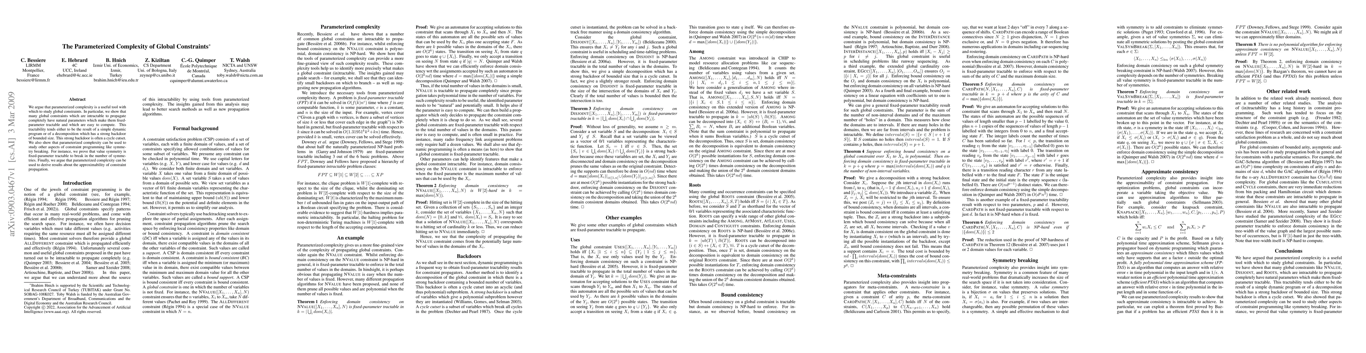 The paper introduces the application of parameterized complexity theory to global constraints in constraint programming, demonstrating fixed-parameter tractability for several intractable constraints.
