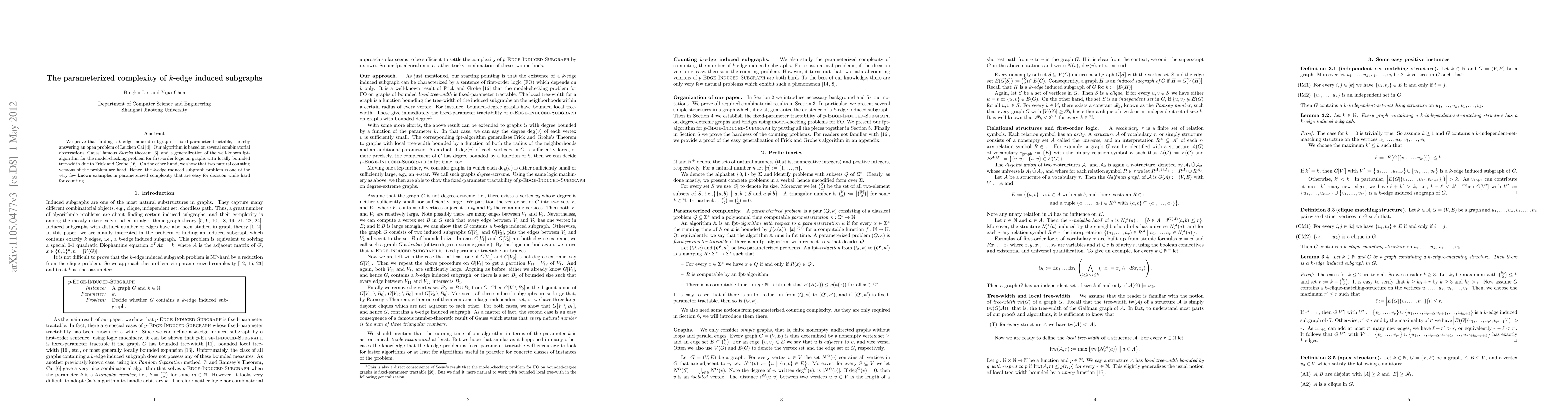 We prove that finding a $k$-edge induced subgraph is fixed-parameter tractable, thereby answering an open problem of Leizhen Cai. Our algorithm is based on several combinatorial observations, Gauss' famous \emph{Eureka} theorem [Andrews, 86], and a generalization of the well-known fpt-algorithm for the model-checking problem for first-order logic on graphs with locally bounded tree-width due to Frick and Grohe [Frick and Grohe, 01]. On the other hand, we show that two natural counting versions of the problem are hard. Hence, the $k$-edge induced subgraph problem is one of the rare known examples in parameterized complexity that are easy for decision while hard for counting.