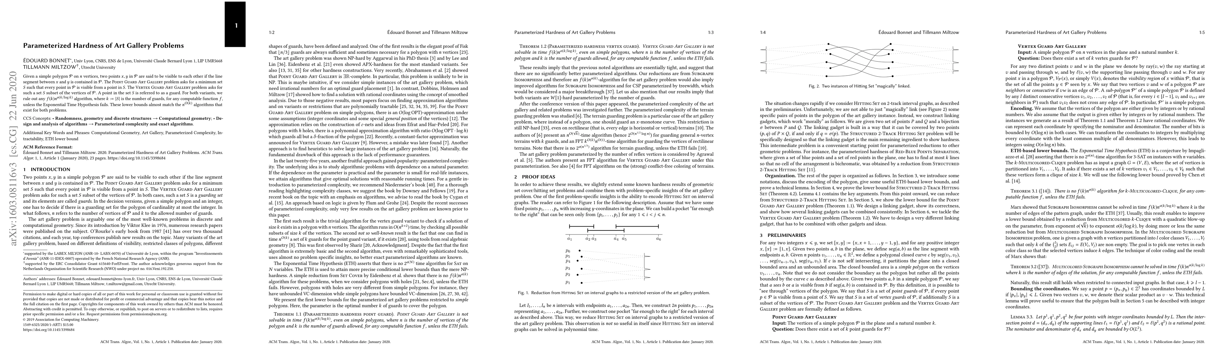 The paper presents novel reduction techniques from Structured2-Track Hitting Set to Art Gallery problems, demonstrating W[1]-hardness and ETH-based lower bounds for both Point Guard and Vertex Guard variants.