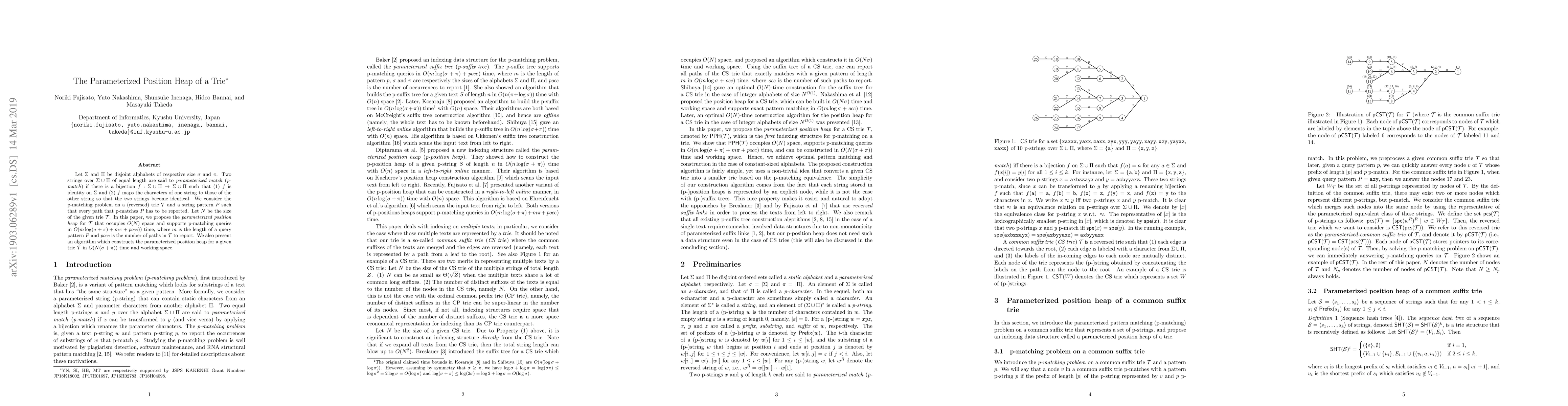 This paper introduces the parameterized position heap for a trie to efficiently report all paths that p-match a given pattern, achieving $O(N)$ space and $O(m \log (\sigma + \pi) + m \pi + \mathit{pocc})$ query time, with construction in $O(N (\sigma + \pi))$ time.