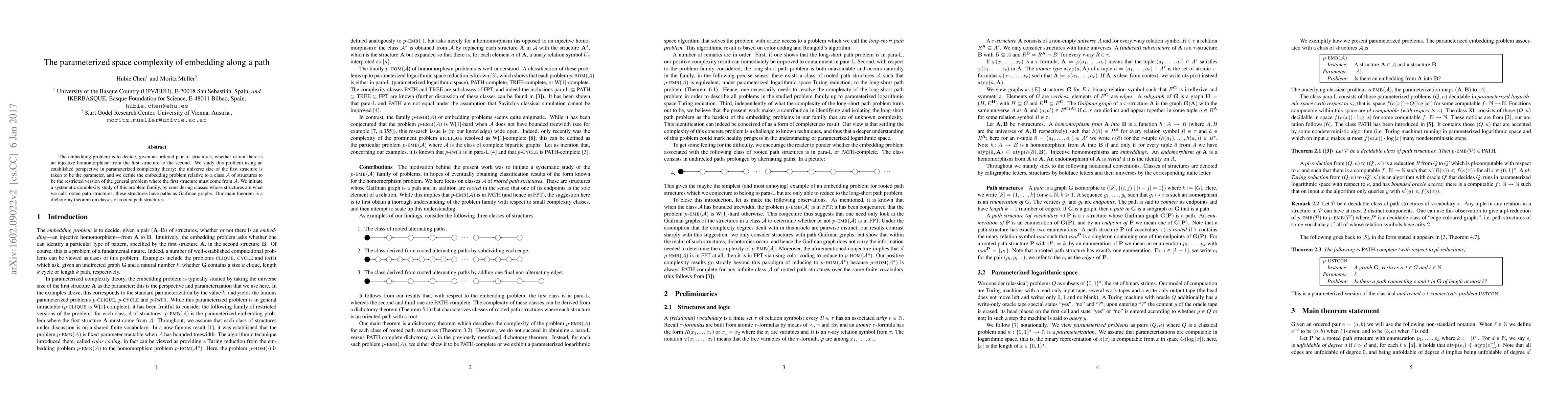 The paper studies the parameterized complexity of embedding one structure into another, focusing on classes of rooted path structures, and establishes a dichotomy theorem that determines the complexity of the problem for these classes.