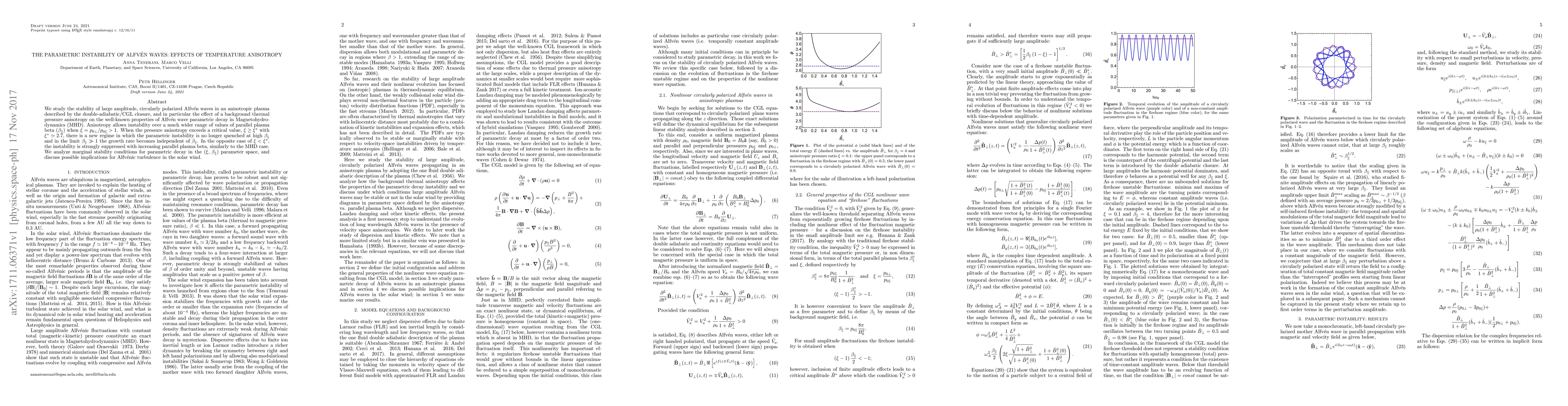 This paper investigates the parametric instability of Alfvén waves in anisotropic plasmas, finding that thermal pressure anisotropy can significantly alter the stability conditions. When pressure anisotropy exceeds a critical value, the instability persists even at high parallel plasma beta values, leading to a new regime of growth rate independence.