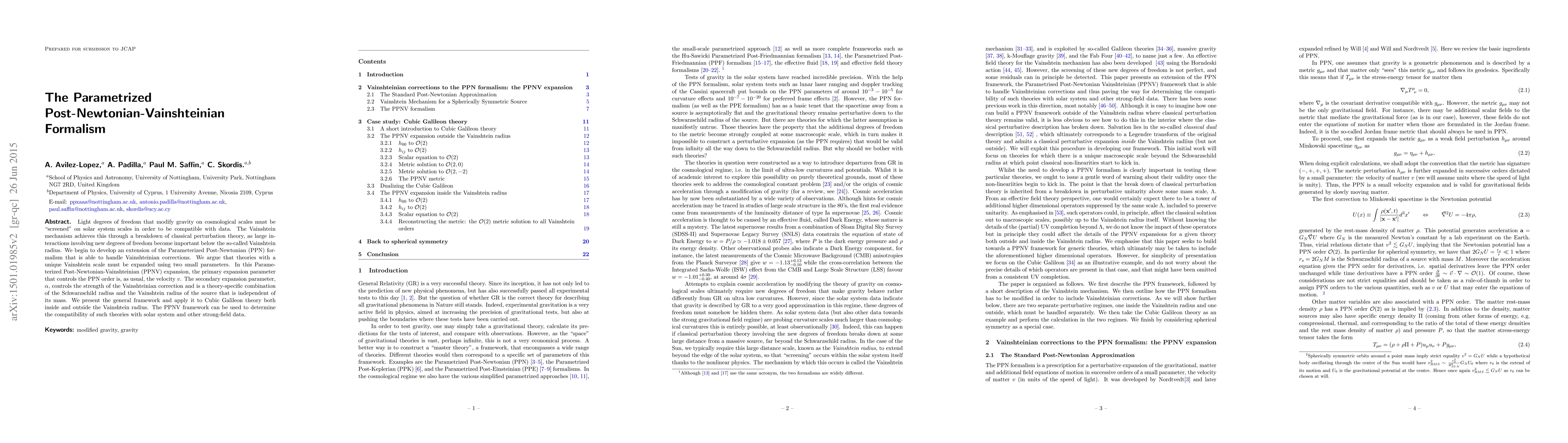 Light degrees of freedom that modify gravity on cosmological scales must be "screened" on solar system scales in order to be compatible with data. The Vainshtein mechanism achieves this through a breakdown of classical perturbation theory, as large interactions involving new degrees of freedom become important below the so-called Vainshtein radius. We begin to develop an extension of the Parameterized Post-Newtonian (PPN) formalism that is able to handle Vainshteinian corrections. We argue that theories with a unique Vainshtein scale must be expanded using two small parameters. In this Parameterized Post-Newtonian-Vainshteinian (PPNV) expansion, the primary expansion parameter that controls the PPN order is, as usual, the velocity $v$. The secondary expansion parameter, $\alpha$, controls the strength of the Vainshteinian correction and is a theory-specific combination of the Schwarzschild radius and the Vainshtein radius of the source that is independent of its mass. We present the general framework and apply it to Cubic Galileon theory both inside and outside the Vainshtein radius. The PPNV framework can be used to determine the compatibility of such theories with solar system and other strong-field data.