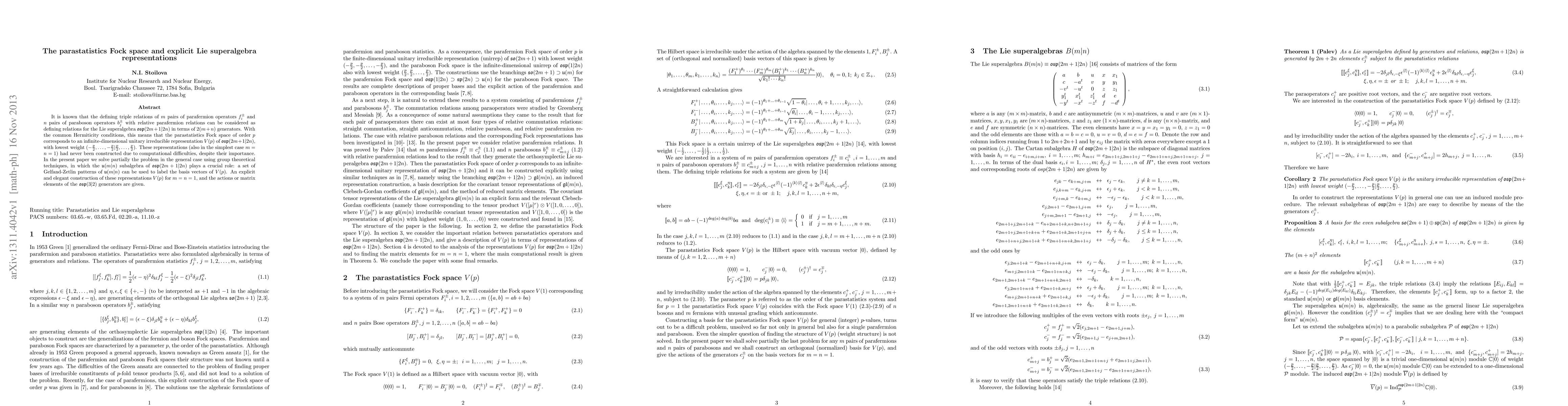 This paper constructs explicit representations of the Lie superalgebra osp(2m+1|2n) using parastatistics Fock space, focusing on the case m=n=1. It employs group theoretical techniques, particularly the u(m|n) subalgebra, to develop Gelfand-Zetlin patterns that label the basis vectors of the infinite-dimensional unitary irreducible representation V(p).