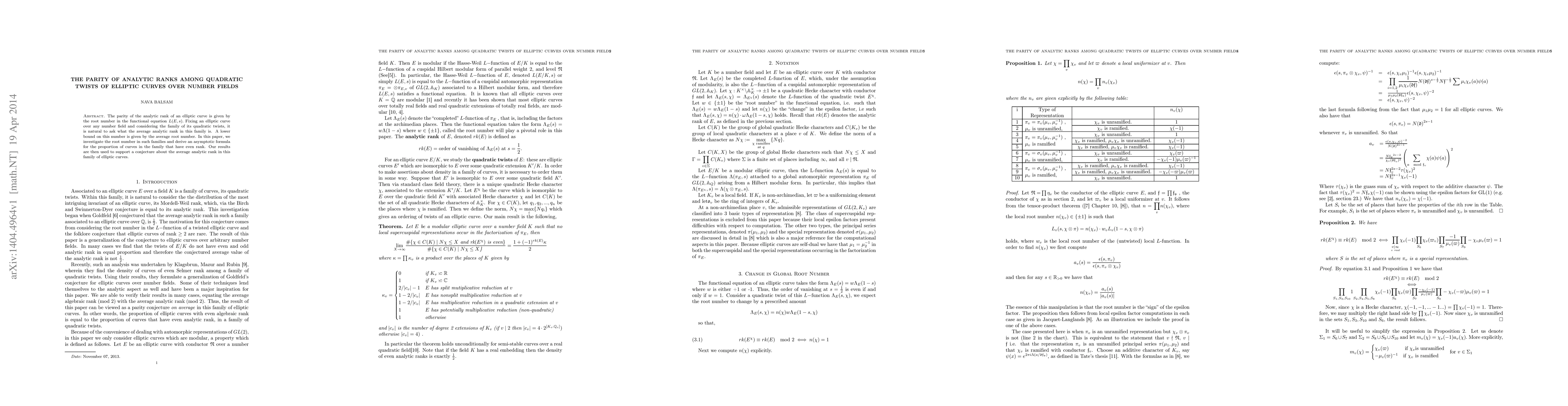 This paper investigates the parity of analytic ranks among quadratic twists of elliptic curves over number fields, deriving an asymptotic formula for the proportion of curves with even rank and supporting a conjecture on the average analytic rank in such families.