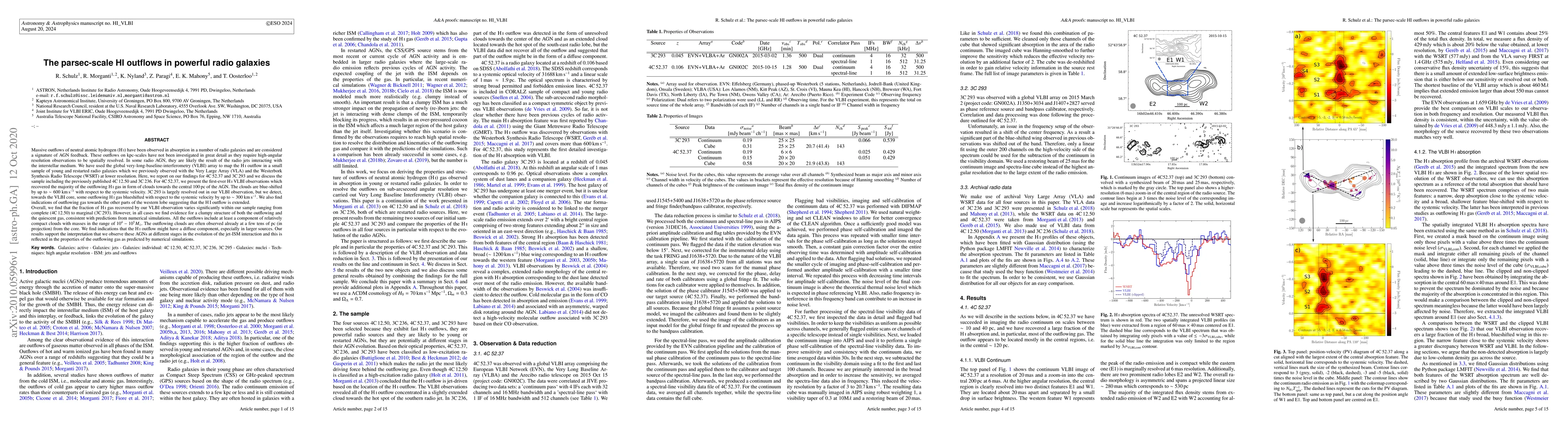 This study uses VLBI to investigate parsec-scale HI outflows in powerful radio galaxies, revealing significant variations in outflow gas fractions and a clumpy structure in both outflowing and quiescent gas. Observations of 4C52.37 and 3C293 show blue-shifted HI clouds, suggesting AGN feedback and different stages of jet-ISM interaction.