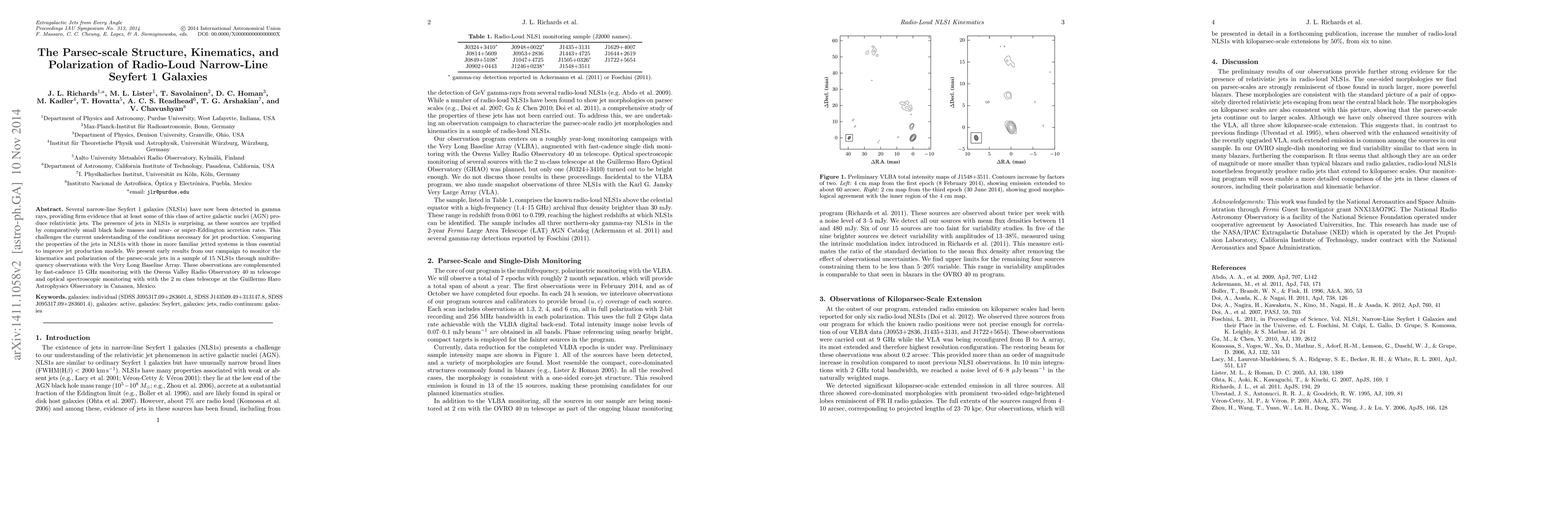 Several narrow-line Seyfert 1 galaxies (NLS1s) have now been detected in gamma rays, providing firm evidence that at least some of this class of active galactic nuclei (AGN) produce relativistic jets. The presence of jets in NLS1s is surprising, as these sources are typified by comparatively small black hole masses and near- or super-Eddington accretion rates. This challenges the current understanding of the conditions necessary for jet production. Comparing the properties of the jets in NLS1s with those in more familiar jetted systems is thus essential to improve jet production models. We present early results from our campaign to monitor the kinematics and polarization of the parsec-scale jets in a sample of 15 NLS1s through multifrequency observations with the Very Long Baseline Array. These observations are complemented by fast-cadence 15 GHz monitoring with the Owens Valley Radio Observatory 40m telescope and optical spectroscopic monitoring with with the 2m class telescope at the Guillermo Haro Astrophysics Observatory in Cananea, Mexico.
