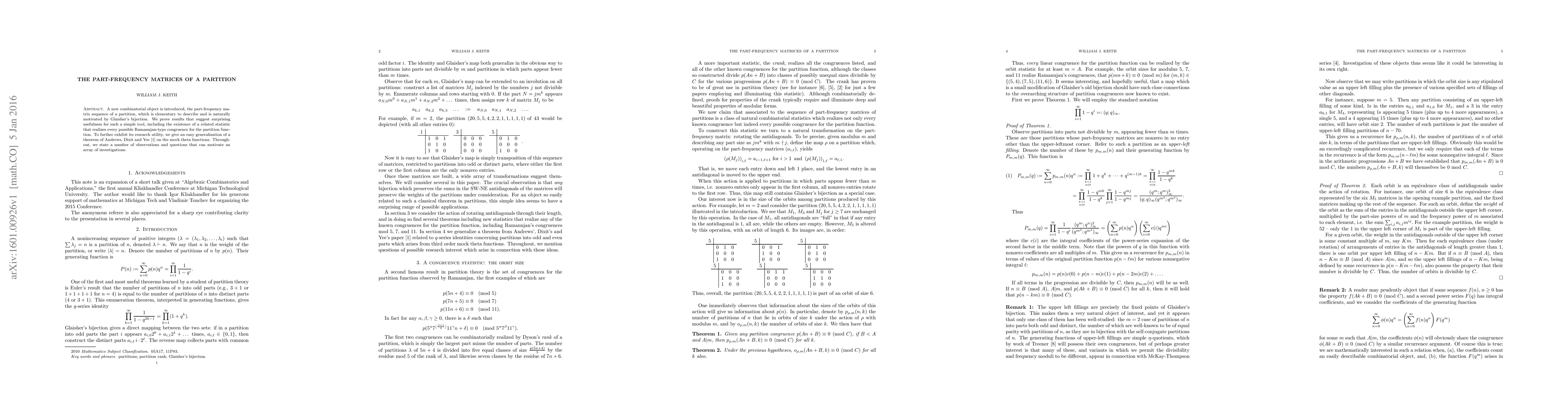 A new combinatorial object is introduced, the part-frequency matrix sequence of a partition, which is elementary to describe and is naturally motivated by Glaisher's bijection. We prove results that suggest surprising usefulness for such a simple tool, including the existence of a related statistic that realizes every possible Ramanujan-type congruence for the partition function. To further exhibit its research utility, we give an easy generalization of a theorem of Andrews, Dixit and Yee on the mock theta functions. Throughout, we state a number of observations and questions that can motivate an array of investigations.