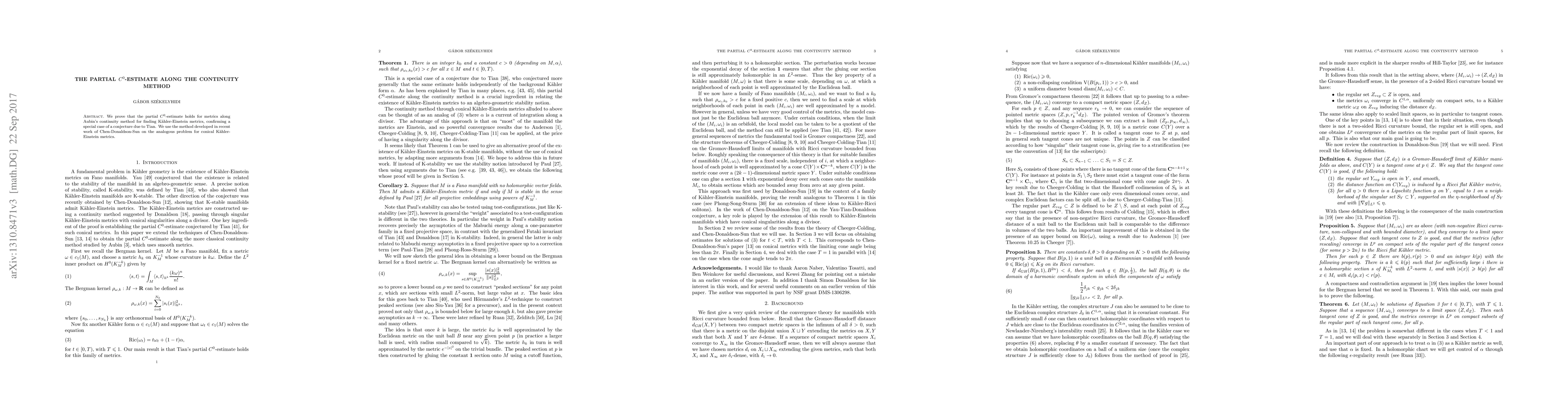 We prove that the partial $C^0$-estimate holds for metrics along Aubin's continuity method for finding K\"ahler-Einstein metrics, confirming a special case of a conjecture due to Tian. We use the method developed in recent work of Chen-Donaldson-Sun on the analogous problem for conical K\"ahler-Einstein metrics.