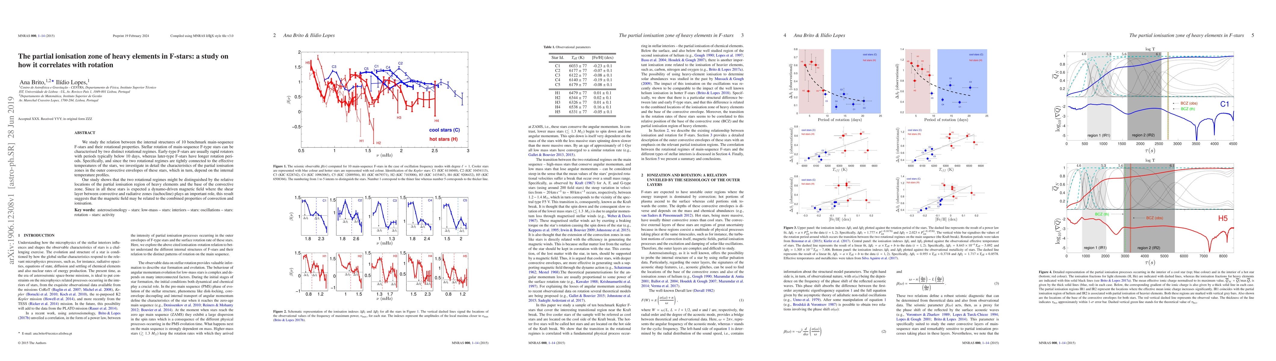 The research examines 10 F-star main-sequence stars, revealing a correlation between their rotation properties and internal structures. It finds that the location of the partial ionisation zone of heavy elements in their outer convective envelopes may distinguish two rotational regimes, potentially linked to the dynamo-driven magnetic field via the tachocline.