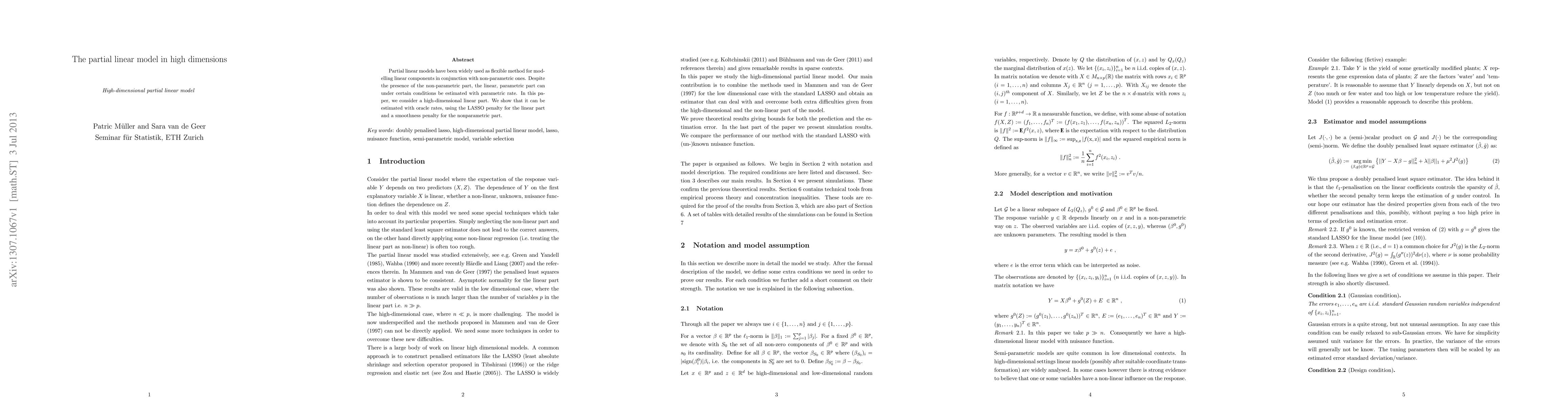 Researchers develop a method to estimate high-dimensional linear parts of partial linear models with oracle rates using LASSO penalty for the linear part and smoothness penalty for nonparametric part.