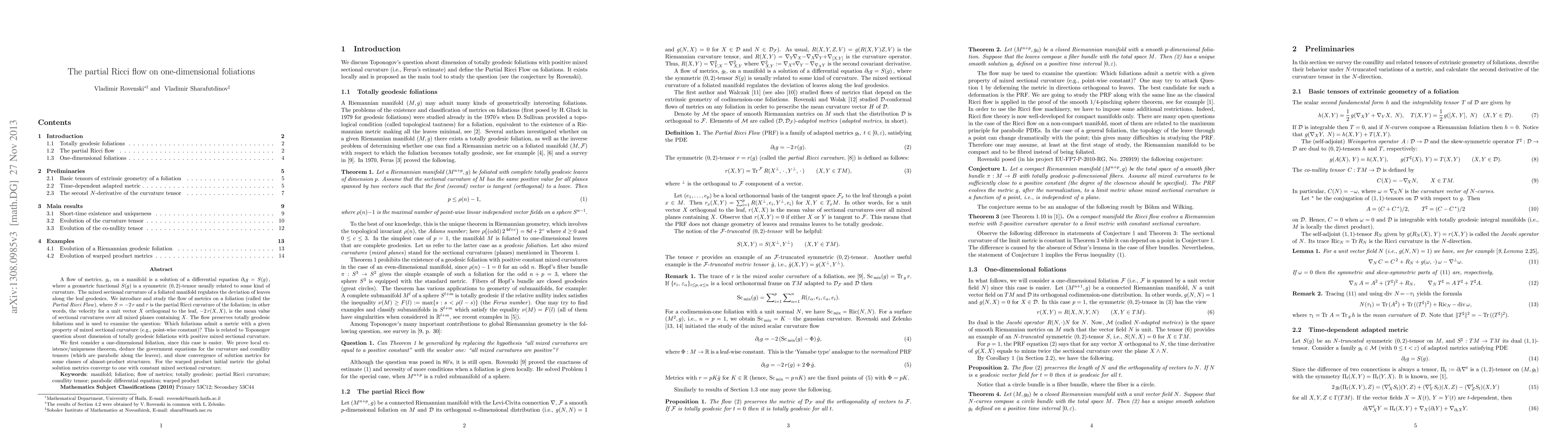 This paper introduces a 'Partial Ricci Flow' that studies how foliations on manifolds evolve under certain conditions, with a focus on one-dimensional cases, and explores their implications for understanding mixed sectional curvature properties.