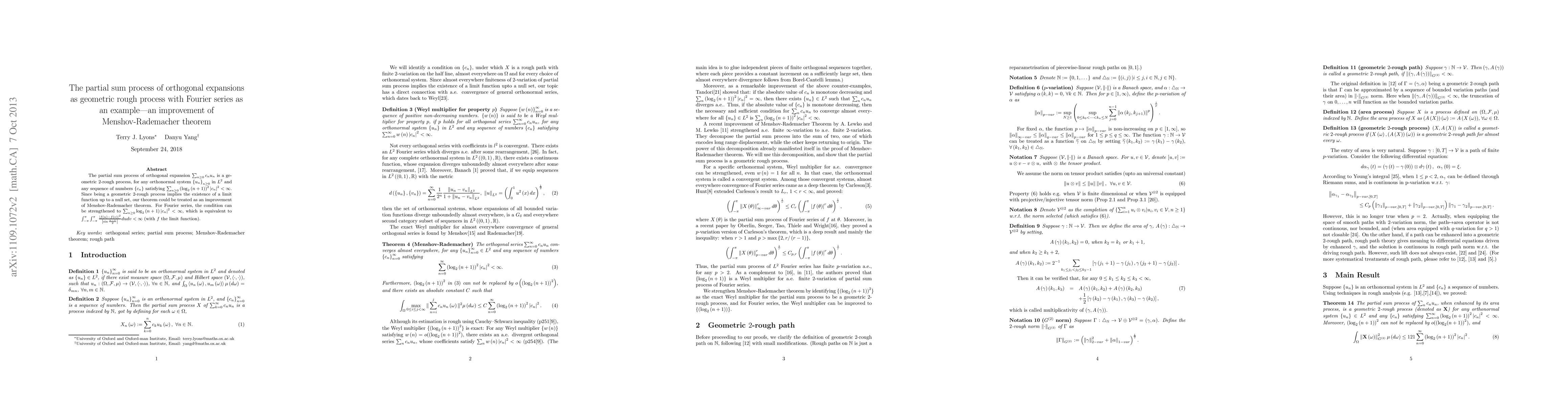 In this paper, we prove that the partial sum process of general orthogonal series is a geometric 2-rough process under the same condition as in Menshov-Rademacher Theorem. For Fourier series, the condition can be improved, and an equivalent condition on the limit function is identified.