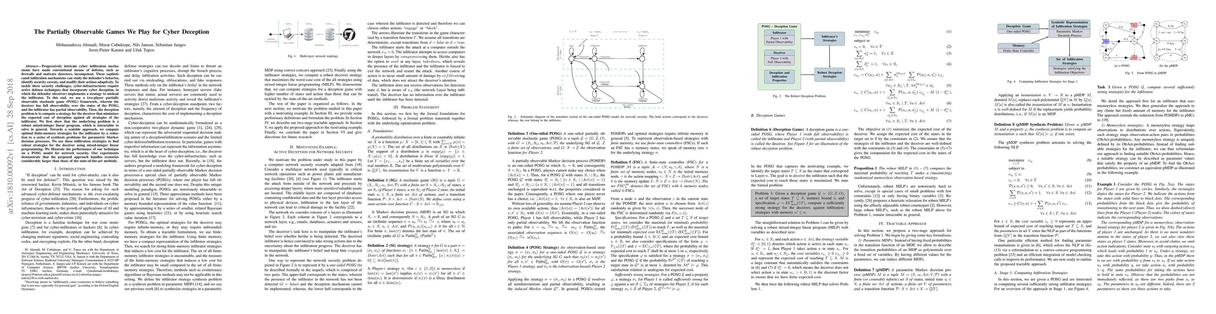 Researchers develop a new method to combat sophisticated cyber infiltration mechanisms using 'cyber deception', where the defender misleads the infiltrator in a partially observable game framework, outperforming existing methods on large-scale scenarios.
