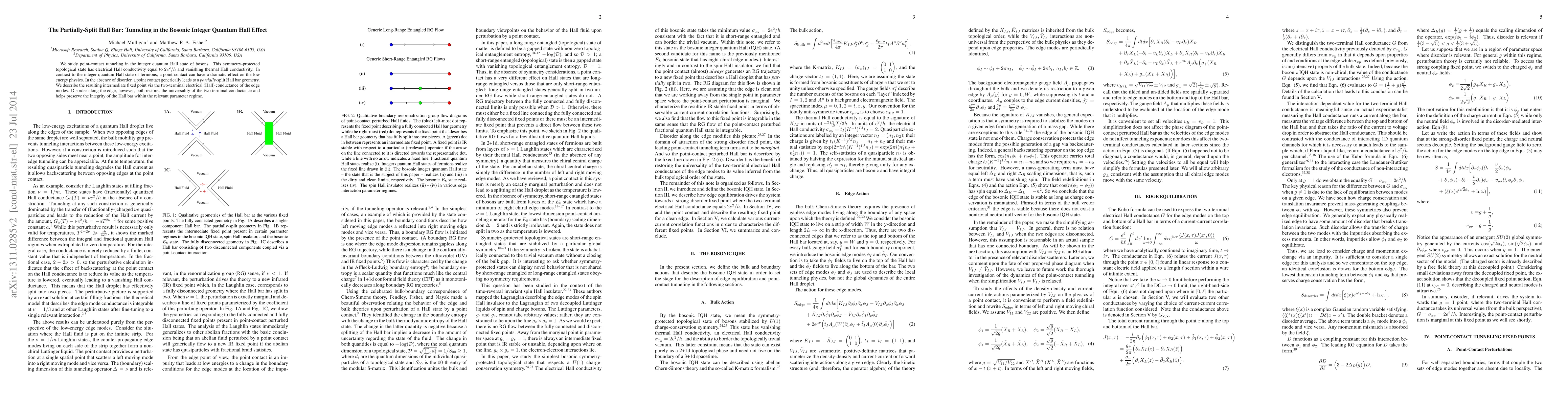 This paper investigates tunneling effects in the bosonic integer quantum Hall effect, focusing on how point contacts can dramatically alter low-energy physics, leading to a partially-split Hall bar geometry. Disorder along the edge restores the universality of conductance and maintains the Hall bar integrity within certain parameters.