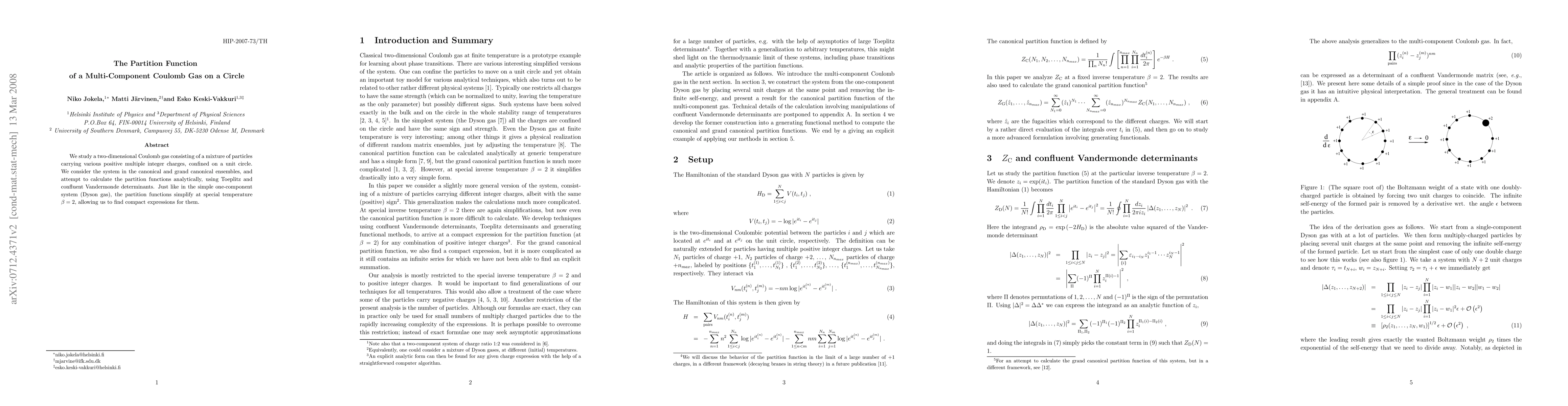We study a two-dimensional Coulomb gas consisting of a mixture of particles carrying various positive multiple integer charges, confined on a unit circle. We consider the system in the canonical and grand canonical ensembles, and attempt to calculate the partition functions analytically, using Toeplitz and confluent Vandermonde determinants. Just like in the simple one-component system (Dyson gas), the partition functions simplify at special temperature $\beta=2$, allowing us to find compact expressions for them.