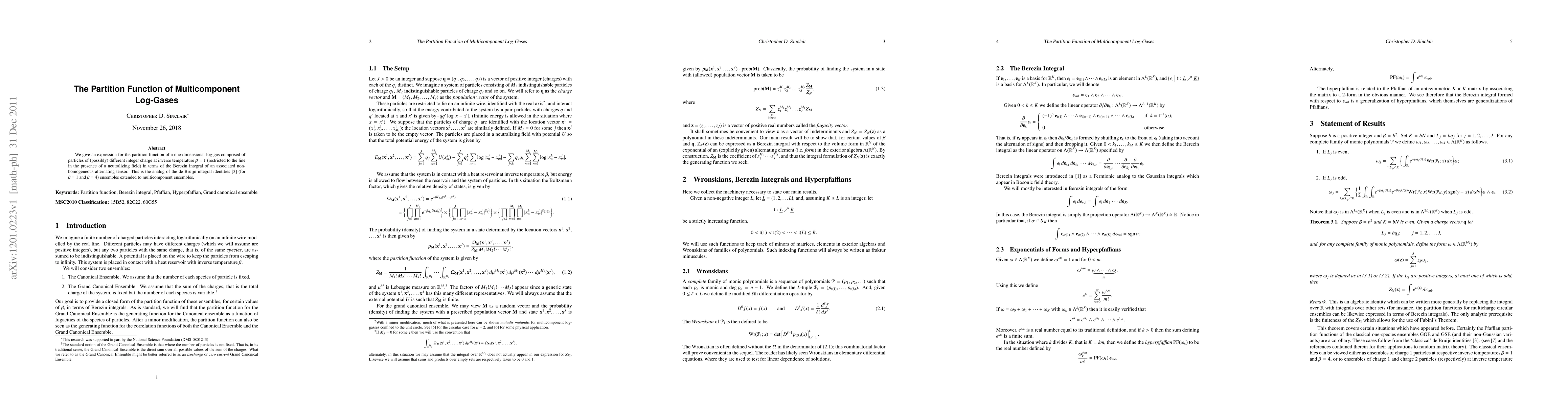 Researchers provide an expression for the partition function of a multicomponent log-gas, which is analogous to de Bruijn integral identities but extended to multiple particle species. The solution involves the Berezin integral of a non-homogeneous alternating tensor.