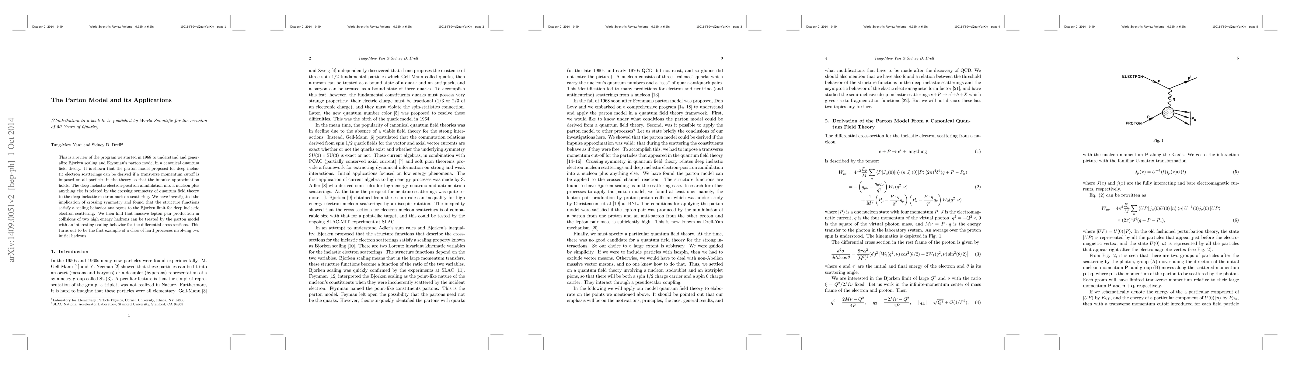 This is a review of the program we started in 1968 to understand and generalize Bjorken scaling and Feynman's parton model in a canonical quantum field theory. It is shown that the parton model proposed for deep inelastic electron scatterings can be derived if a transverse momentum cutoff is imposed on all particles in the theory so that the impulse approximation holds. The deep inelastic electron-positron annihilation into a nucleon plus anything else is related by the crossing symmetry of quantum field theory to the deep inelastic electron-nucleon scattering. We have investigated the implication of crossing symmetry and found that the structure functions satisfy a scaling behavior analogous to the Bjorken limit for deep inelastic electron scattering. We then find that massive lepton pair production in collisions of two high energy hadrons can be treated by the parton model with an interesting scaling behavior for the differential cross sections. This turns out to be the first example of a class of hard processes involving two initial hadrons.
