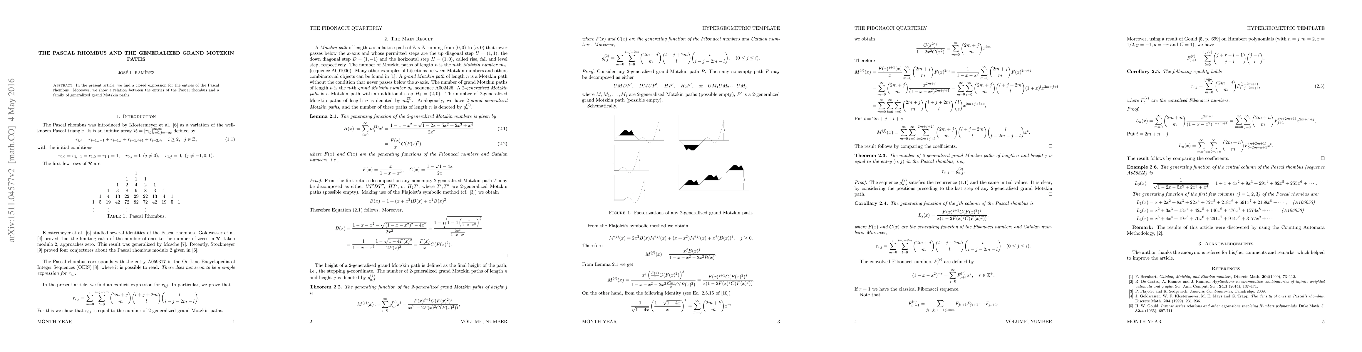 In the present article, we find a closed expression for the entries of the Pascal rhombus. Moreover, we show a relation between the entries of the Pascal rhombus and a family of generalized grand Motzkin paths.
