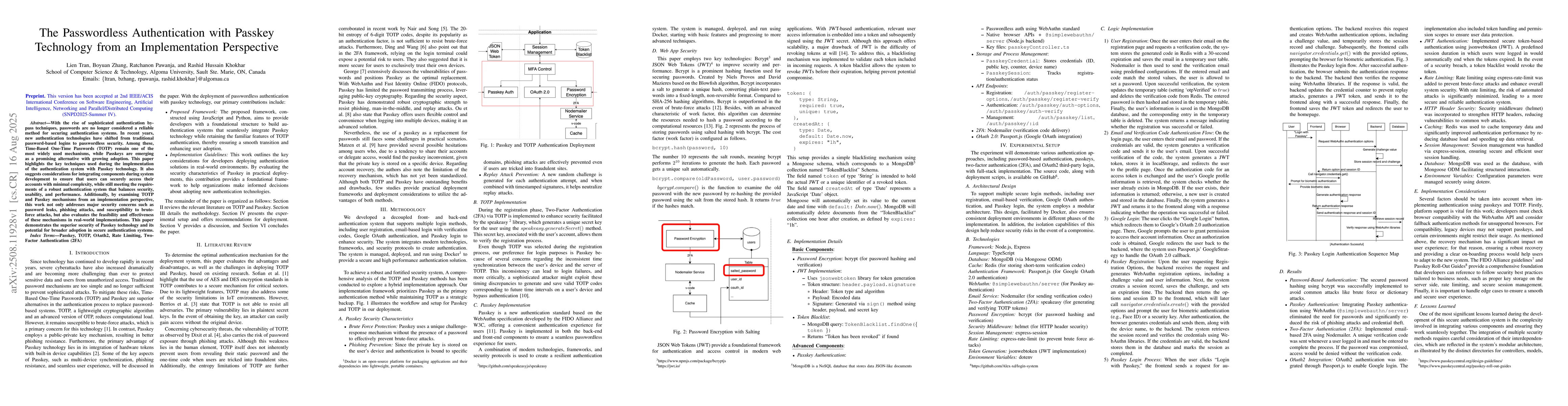 With the rise of sophisticated authentication bypass techniques, passwords are no longer considered a reliable method for securing authentication systems. In recent years, new authentication technologies have shifted from traditional password-based logins to passwordless security. Among these, Time-Based One-Time Passwords (TOTP) remain one of the most widely used mechanisms, while Passkeys are emerging as a promising alternative with growing adoption. This paper highlights the key techniques used during the implementation of the authentication system with Passkey technology. It also suggests considerations for integrating components during system development to ensure that users can securely access their accounts with minimal complexity, while still meeting the requirements of a robust authentication system that balances security, usability, and performance. Additionally, by examining TOTP and Passkey mechanisms from an implementation perspective, this work not only addresses major security concerns such as password leaks, phishing attacks, and susceptibility to brute-force attacks, but also evaluates the feasibility and effectiveness of these mechanisms in real-world implementations. This paper demonstrates the superior security of Passkey technology and its potential for broader adoption in secure authentication systems.