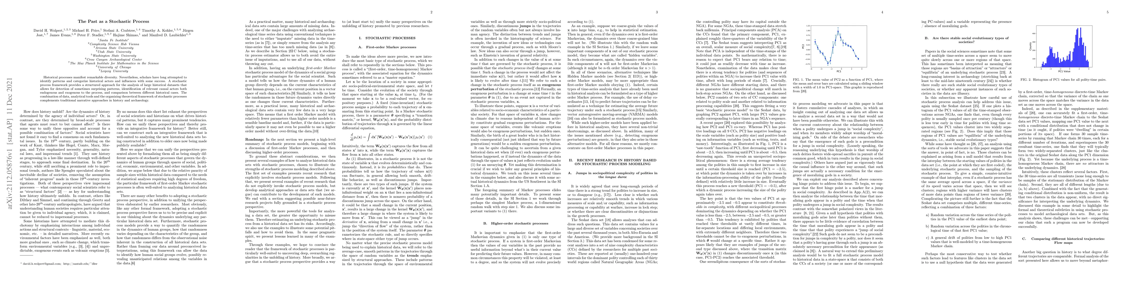 Historical processes manifest remarkable diversity. Nevertheless, scholars have long attempted to identify patterns and categorize historical actors and influences with some success. A stochastic process framework provides a structured approach for the analysis of large historical datasets that allows for detection of sometimes surprising patterns, identification of relevant causal actors both endogenous and exogenous to the process, and comparison between different historical cases. The combination of data, analytical tools and the organizing theoretical framework of stochastic processes complements traditional narrative approaches in history and archaeology.