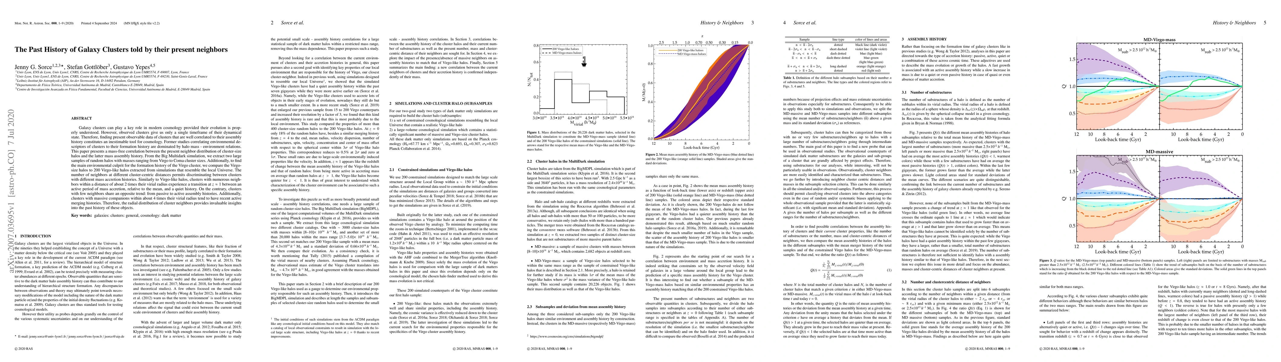 Galaxy clusters can play a key role in modern cosmology provided their evolution is properly understood. However, observed clusters give us only a single timeframe of their dynamical state. Therefore, finding present observable data of clusters that are well correlated to their assembly history constitutes an inestimable tool for cosmology. Former studies correlating environmental descriptors of clusters to their formation history are dominated by halo mass - environment relations. This paper presents a mass-free correlation between the present neighbor distribution of cluster-size halos and the latter mass assembly history. From the Big Multidark simulation, we extract two large samples of random halos with masses ranging from Virgo to Coma cluster sizes. Additionally, to find the main environmental culprit for the formation history of the Virgo cluster, we compare the Virgo-size halos to 200 Virgo-like halos extracted from simulations that resemble the local Universe. The number of neighbors at different cluster-centric distances permits discriminating between clusters with different mass accretion histories. Similarly to Virgo-like halos, clusters with numerous neighbors within a distance of about 2 times their virial radius experience a transition at z~1 between an active period of mass accretion, relative to the mean, and a quiet history. On the contrary, clusters with few neighbors share an opposite trend: from passive to active assembly histories. Additionally, clusters with massive companions within about 4 times their virial radius tend to have recent active merging histories. Therefore, the radial distribution of cluster neighbors provides invaluable insights into the past history of these objects.