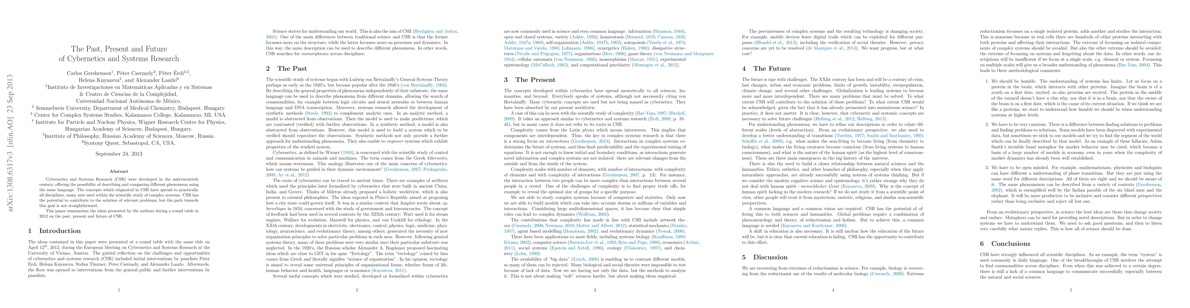 This paper explores the history and future of Cybernetics and Systems Research (CSR), highlighting its potential to contribute to solving complex system problems, but notes that the path to this goal is not straightforward. It summarizes the key ideas from a 2012 round table discussion on CSR's past, present, and future.