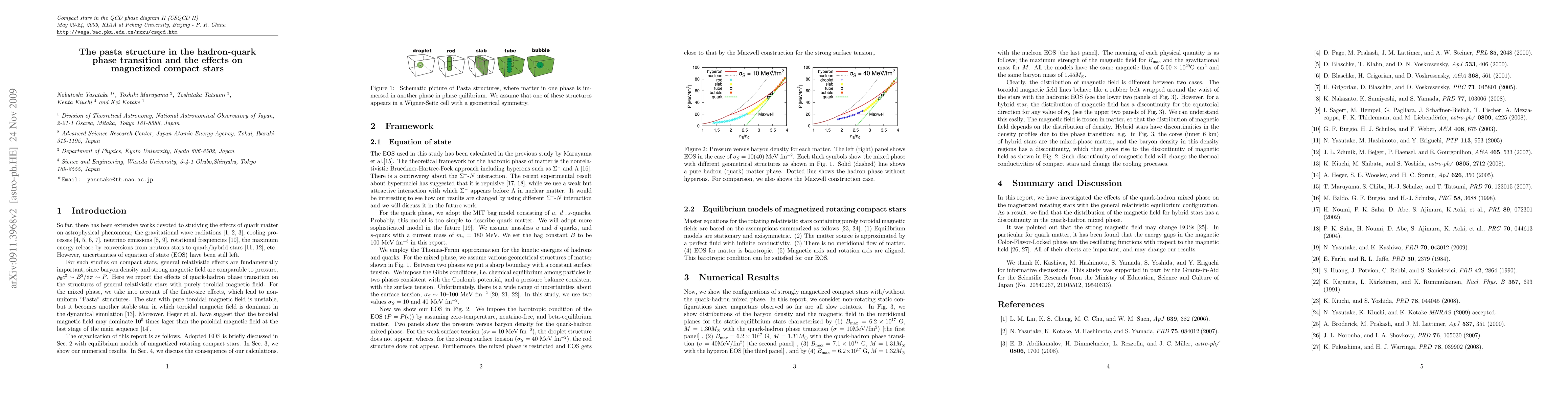 We report the effects of quark-hadron phase transition on the structures of general relativistic stars with purely toroidal magnetic field. For the mixed phase, we take into account of the finite-size effects, which lead to non-uniform "Pasta" structures. Our study is based on axisymetric and stationary formalism including purely toroidal magnetic field. For hybrid stars, we find the characteristic distribution of magnetic field, which has a discontinuity originated in the quark-hadron mixed phase. These distributions of magnetic field will change astrophysical phenomena, such as cooling processes.