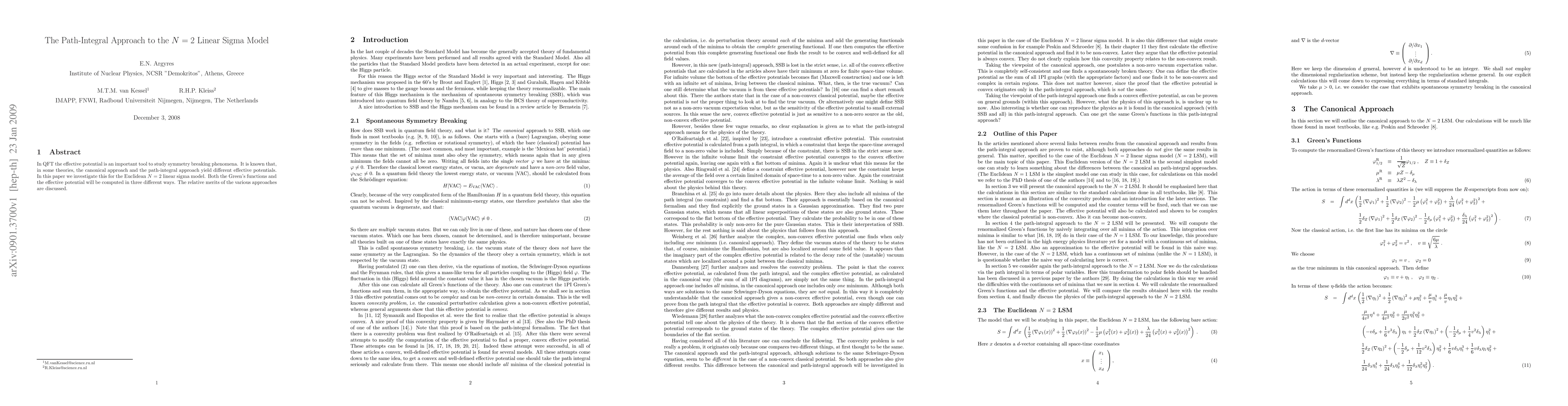 In QFT the effective potential is an important tool to study symmetry breaking phenomena. It is known that, in some theories, the canonical approach and the path-integral approach yield different effective potentials. In this paper we investigate this for the Euclidean N=2 linear sigma model. Both the Green's functions and the effective potential will be computed in three different ways. The relative merits of the various approaches are discussed.