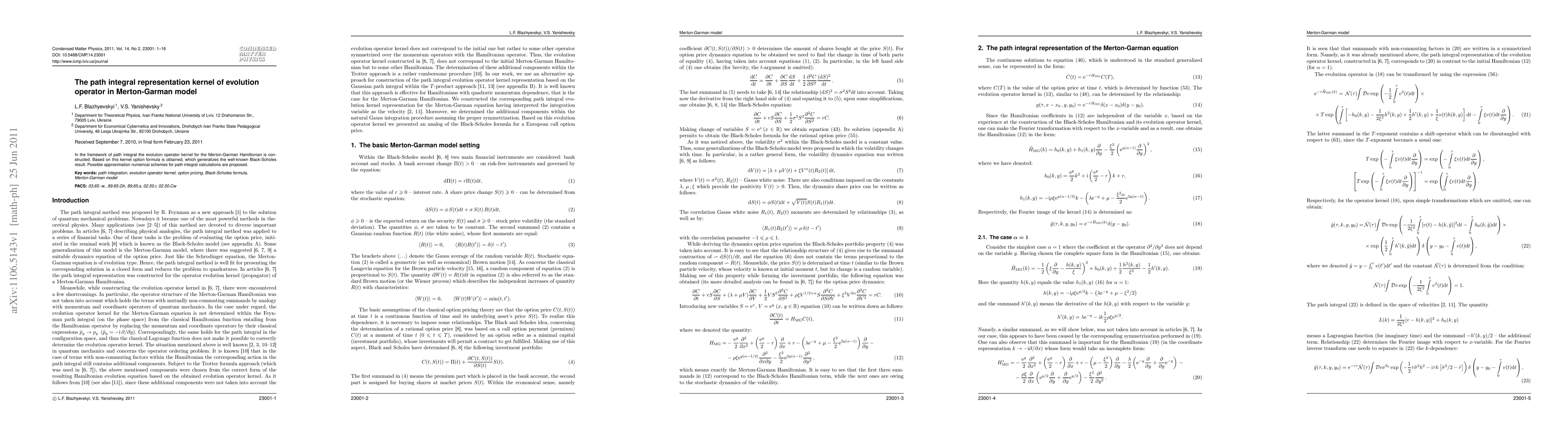 Researchers developed a path integral representation kernel for the Merton-Garman model's evolution operator, generalizing the Black-Scholes result, and proposed numerical schemes for its calculation.