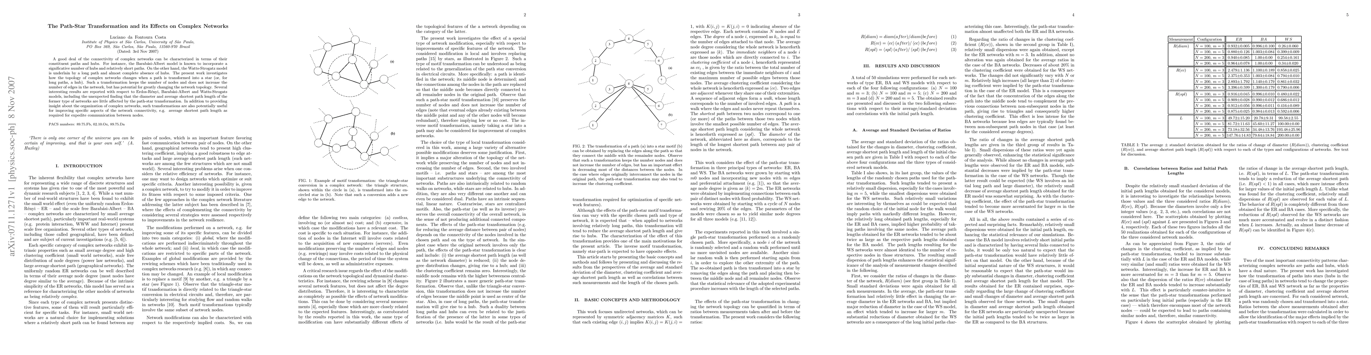 A good deal of the connectivity of complex networks can be characterized in terms of their constituent paths and hubs. For instance, the Barab\'asi-Albert model is known to incorporate a significative number of hubs and relatively short paths. On the other hand, the Watts-Strogatz model is underlain by a long path and almost complete absence of hubs. The present work investigates how the topology of complex networks changes when a path is transformed into a star (or, for long paths, a hub). Such a transformation keeps the number of nodes and does not increase the number of edges in the network, but has potential for greatly changing the network topology. Several interesting results are reported with respect to Erdos-R\'enyi, Barab\'asi-Albert and Watts-Strogats models, including the unexpected finding that the diameter and average shortest path length of the former type of networks are little affected by the path-star transformation. In addition to providing insight about the organization of complex networks, such transformations are also potentially useful for improving specific aspects of the network connectivity, e.g. average shortest path length as required for expedite communication between nodes.