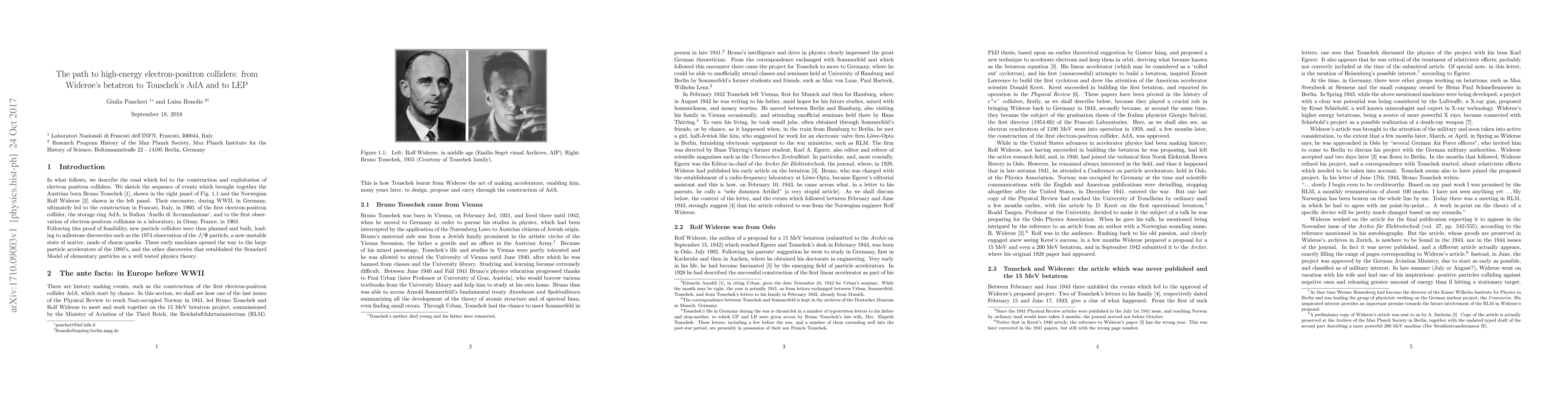 The paper traces the development of electron-positron colliders from the 15 MeV betatron built secretly by Rolf Wideroe and Bruno Touschek during WWII, to AdA, the first electron-positron collider constructed by Touschek in Frascati, Italy, in 1960. It highlights the subsequent relocation of AdA to Orsay, France, where it successfully demonstrated particle collisions, paving the way for high-energy physics exploration using particle colliders.