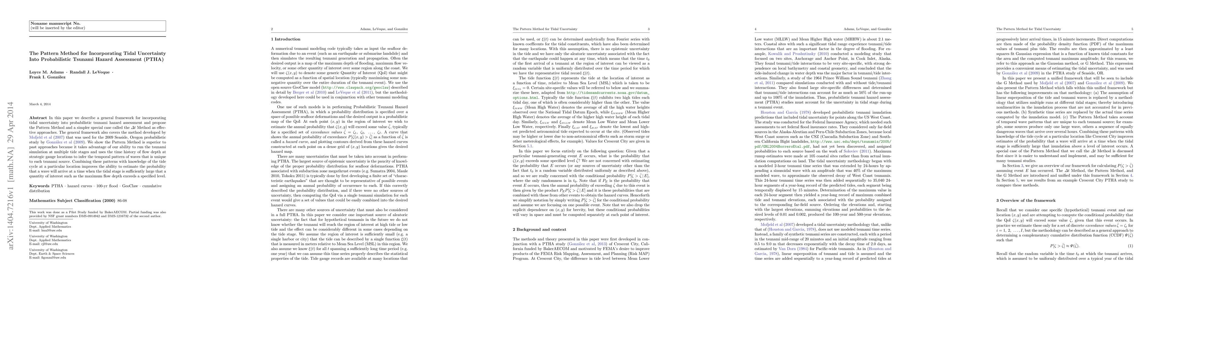In this paper we describe a general framework for incorporating tidal uncertainty into probabilistic tsunami hazard assessment and propose the Pattern Method and a simpler special case called the $\Delta t$ Method as effective approaches. The general framework also covers the method developed by Mofjeld et.al in 2007 that was used for the 2009 Seaside, Oregon probabilistic study by Gonzalez et.al. We show the Pattern Method is superior to past approaches because it takes advantage of our ability to run the tsunami simulation at multiple tide stages and uses the time history of flow depth at strategic gauge locations to infer the temporal pattern of waves that is unique to each tsunami source. Combining these patterns with knowledge of the tide cycle at a particular location improves the ability to estimate the probability that a wave will arrive at a time when the tidal stage is sufficiently large that a quantity of interest such as the maximum flow depth exceeds a specified level.