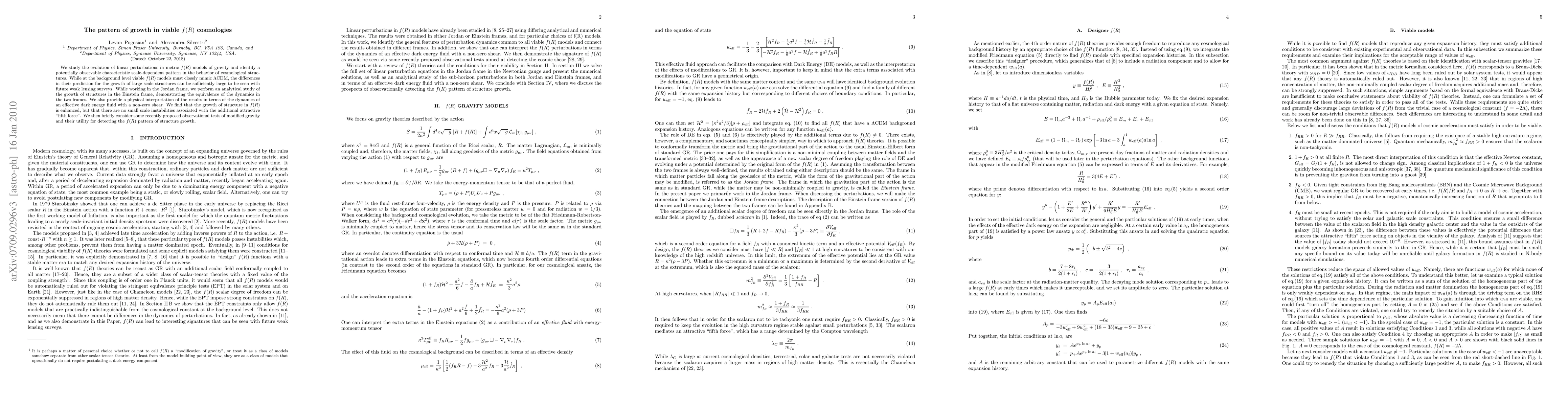 We study the evolution of linear perturbations in metric f(R) models of gravity and identify a potentially observable characteristic scale-dependent pattern in the behavior of cosmological structures. While at the background level viable f(R) models must closely mimic LCDM, the differences in their prediction for the growth of large scale structures can be sufficiently large to be seen with future weak lensing surveys. While working in the Jordan frame, we perform an analytical study of the growth of structures in the Einstein frame, demonstrating the equivalence of the dynamics in the two frames. We also provide a physical interpretation of the results in terms of the dynamics of an effective dark energy fluid with a non-zero shear. We find that the growth of structure in f(R) is enhanced, but that there are no small scale instabilities associated with the additional attractive "fifth force". We then briefly consider some recently proposed observational tests of modified gravity and their utility for detecting the f(R) pattern of structure growth.