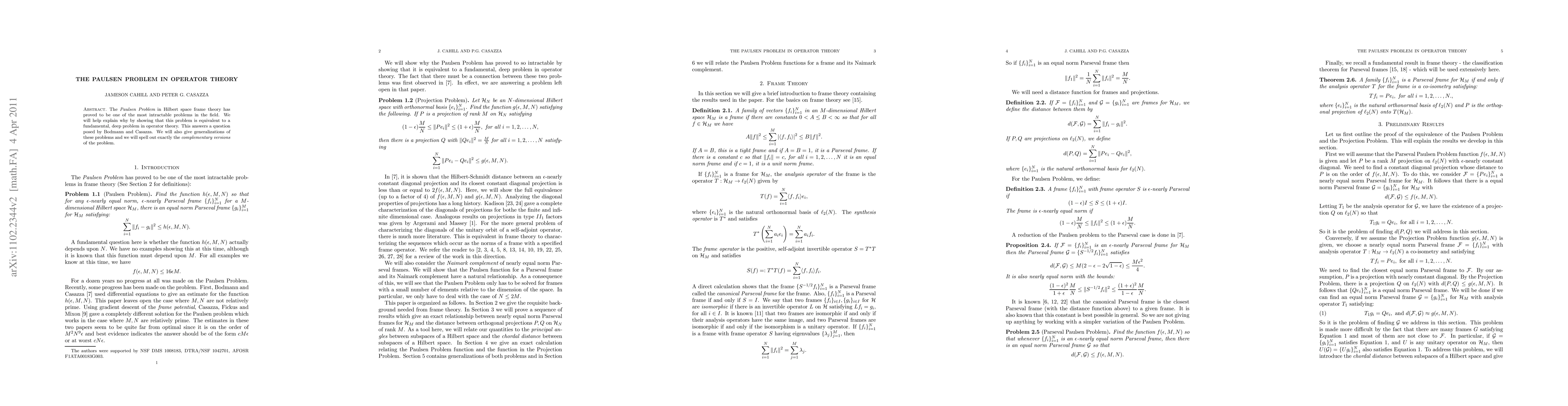 The Paulsen Problem in Hilbert space frame theory has proved to be one of the most intractable problems in the field. We will help explain why by showing that this problem is equivalent to a fundamental, deep problem in operator theory. Along the way we will give a new exact computation for chordal distances, we will give a generalization of these problems and we will spell out exactly the complementary versions of the problem.