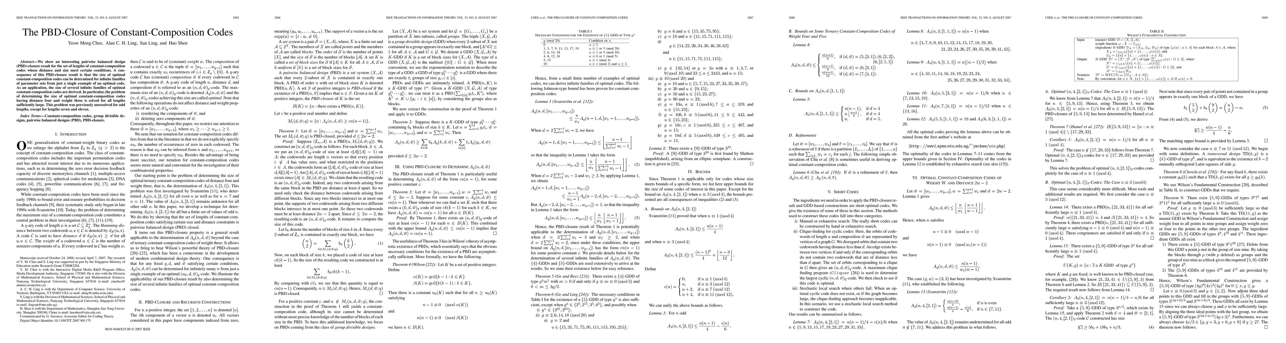 This paper demonstrates a PBD-closure result for constant-composition codes, revealing that the size of optimal codes can be inferred from a single example for infinite parameter sets. It resolves the previously unsolved problem of determining the size of optimal codes with distance four and weight three for sufficiently large odd lengths.