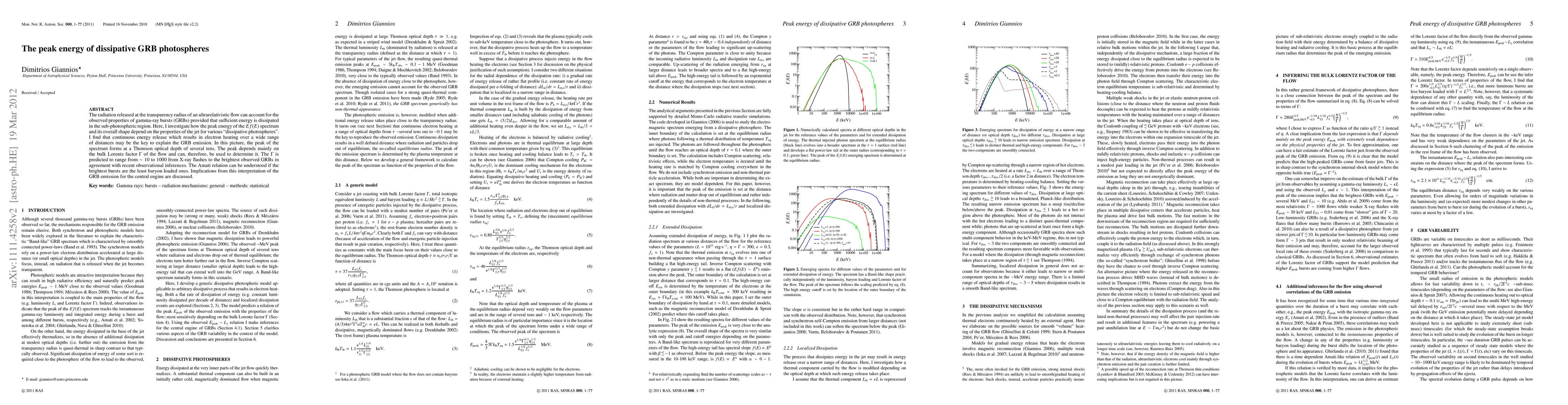 The radiation released at the transparency radius of an ultrarelativistic flow can account for the observed properties of gamma-ray bursts (GRBs) provided that sufficient energy is dissipated in the sub-photospheric region. Here, I investigate how the peak energy of the E*f(E) spectrum and its overall shape depend on the properties of the jet for various "dissipative photospheres". I find that continuous energy release which results in electron heating over a wide range of distances may be the key to explain the GRB emission. In this picture, the peak of the spectrum forms at a Thomson optical depth of several tens. The peak depends mainly on the bulk Lorentz factor Gamma of the flow and can, therefore, be used to determine it. The Gamma is predicted to range from ~10 to 1000 from X-ray flashes to the brightest observed GRBs in agreement with recent observational inferences. The Amati relation can be understood if the brightest bursts are the least baryon loaded ones. Implications from this interpretation of the GRB emission for the central engine are discussed.