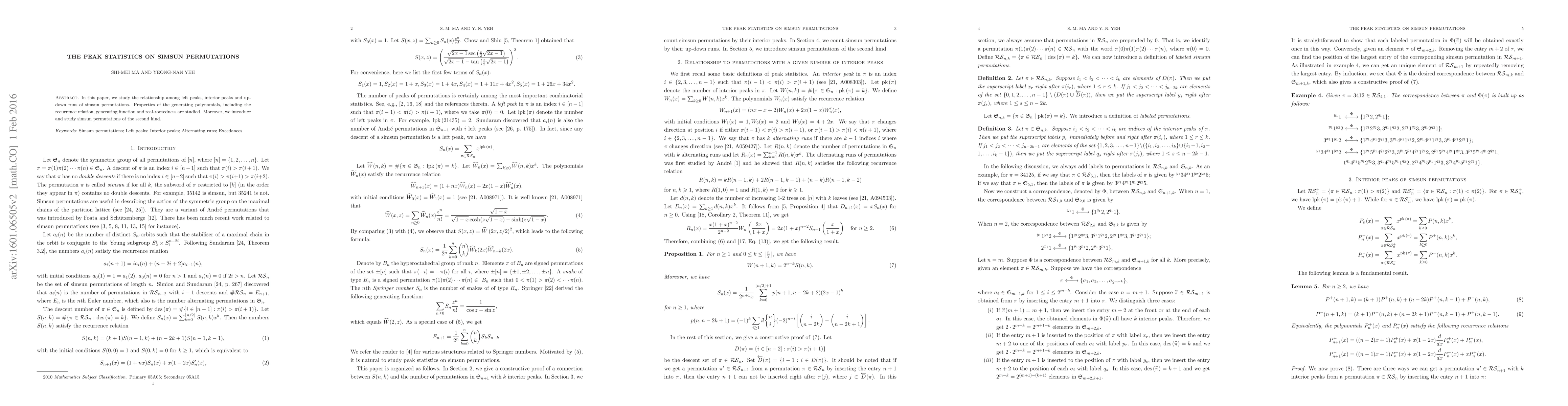 In this paper, we study the relationship among left peaks, interior peaks and up-down runs of simsun permutations. Properties of the generating polynomials, including the recurrence relation, generating function and real-rootedness are studied. Moreover, we introduce and study simsun permutations of the second kind.
