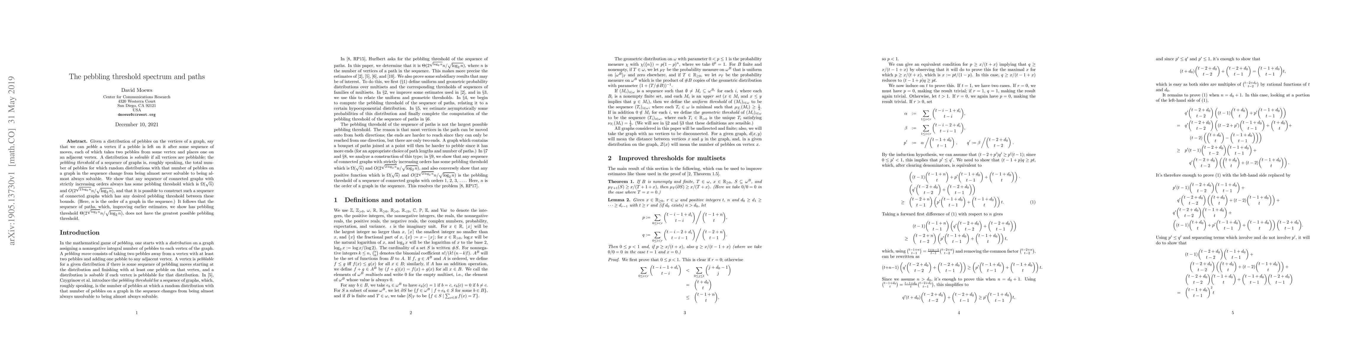 Given a distribution of pebbles on the vertices of a graph, say that we can pebble a vertex if a pebble is left on it after some sequence of moves, each of which takes two pebbles from some vertex and places one on an adjacent vertex. A distribution is solvable if all vertices are pebblable; the pebbling threshold of a sequence of graphs is, roughly speaking, the total number of pebbles for which random distributions with that number of pebbles on a graph in the sequence change from being almost never solvable to being almost always solvable. We show that any sequence of connected graphs with strictly increasing orders always has some pebbling threshold which is $\Omega(\sqrt{n})$ and $O(2^{\sqrt{2 \log_2 n}} n/\sqrt{\log_2 n})$, and that it is possible to construct such a sequence of connected graphs which has any desired pebbling threshold between these bounds. (Here, $n$ is the order of a graph in the sequence.) It follows that the sequence of paths, which, improving earlier estimates, we show has pebbling threshold $\Theta(2^{\sqrt{\log_2 n}} n/\sqrt{\log_2 n})$, does not have the greatest possible pebbling threshold.