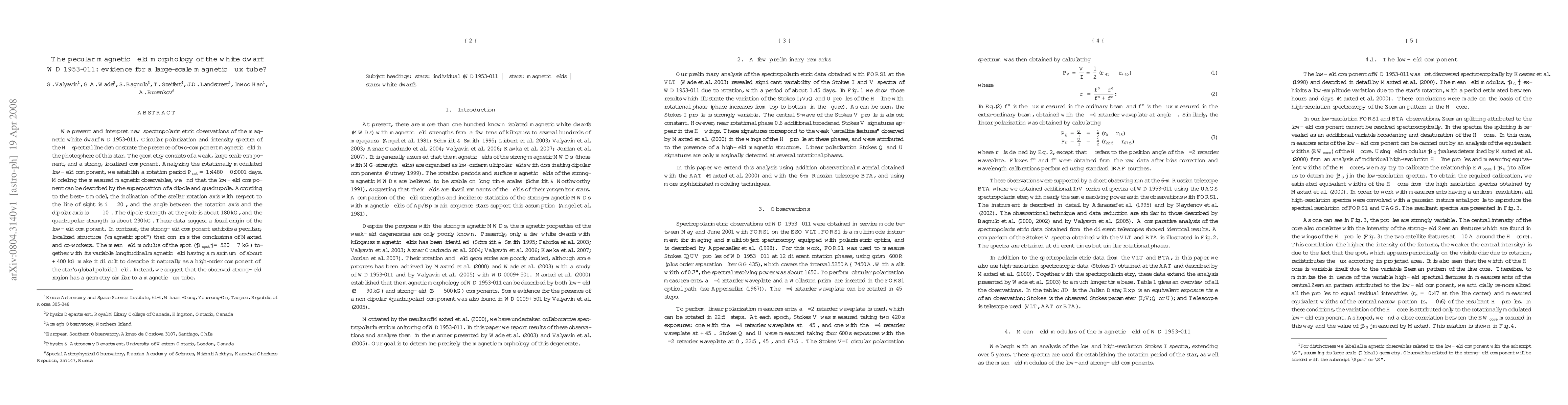 This paper presents new spectropolarimetric observations of WD 1953-011, revealing a two-component magnetic field with a large-scale low-field component and a strong, localized magnetic spot, suggesting the presence of a magnetic flux tube. The low-field component is modeled as a superposition of dipole and quadrupole, while the spot's peculiar structure indicates a different origin.