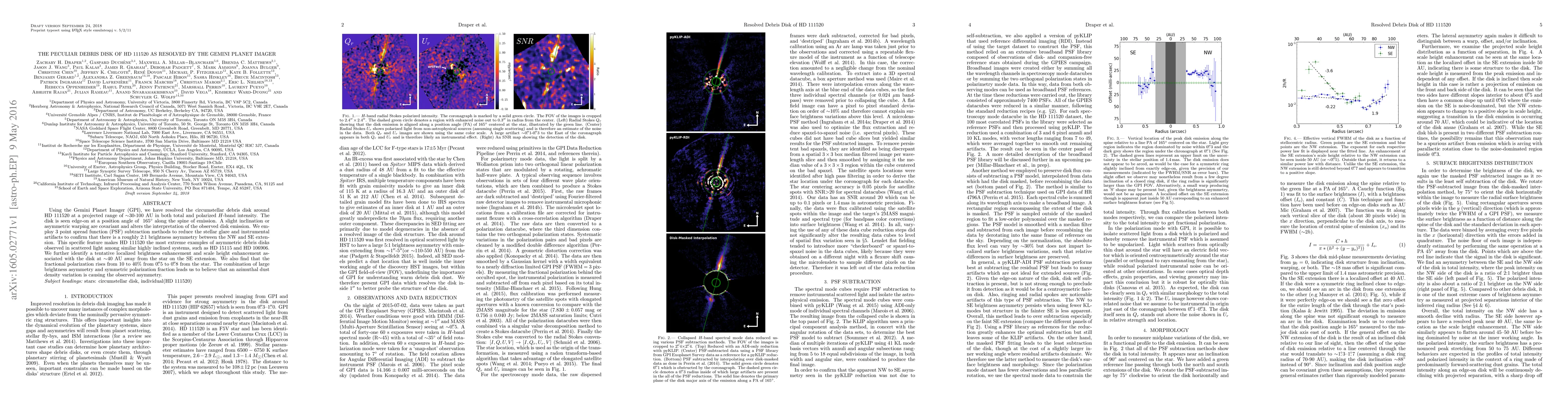 The Gemini Planet Imager resolved the edge-on debris disk around HD 111520, revealing a significant 2:1 brightness asymmetry between the NW and SE extensions, making it the most extreme asymmetric debris disk observed. The fractional polarization rises from 10 to 40% at distances from the star, suggesting an azimuthal dust density variation is responsible for the asymmetry.