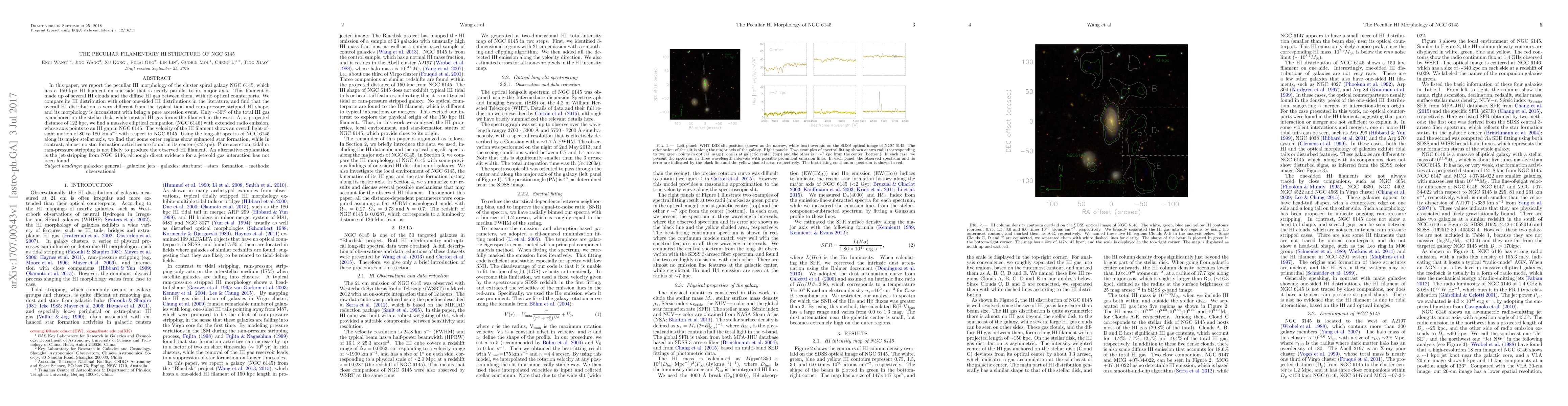 In this paper, we report the peculiar HI morphology of the cluster spiral galaxy NGC 6145, which has a 150 kpc HI filament on one side that is nearly parallel to its major axis. This filament is made up of several HI clouds and the diffuse HI gas between them, with no optical counterparts. We compare its HI distribution with other one-sided HI distributions in the literature, and find that the overall HI distribution is very different from the typical tidal and ram-pressure stripped HI shape, and its morphology is inconsistent with being a pure accretion event. Only about 30% of the total HI gas is anchored on the stellar disk, while most of HI gas forms the filament in the west. At a projected distance of 122 kpc, we find a massive elliptical companion (NGC 6146) with extended radio emission, whose axis points to an HI gap in NGC 6145. The velocity of the HI filament shows an overall light-of- sight motion of 80 to 180 km/s with respect to NGC 6145. Using the long-slit spectra of NGC 6145 along its major stellar axis, we find that some outer regions show enhanced star formation, while in contrast, almost no star formation activities are found in its center (less than 2 kpc). Pure accretion, tidal or ram-pressure stripping is not likely to produce the observed HI filament. An alternative explanation is the jet-stripping from NGC 6146, although direct evidence for a jet-cold gas interaction has not been found.
