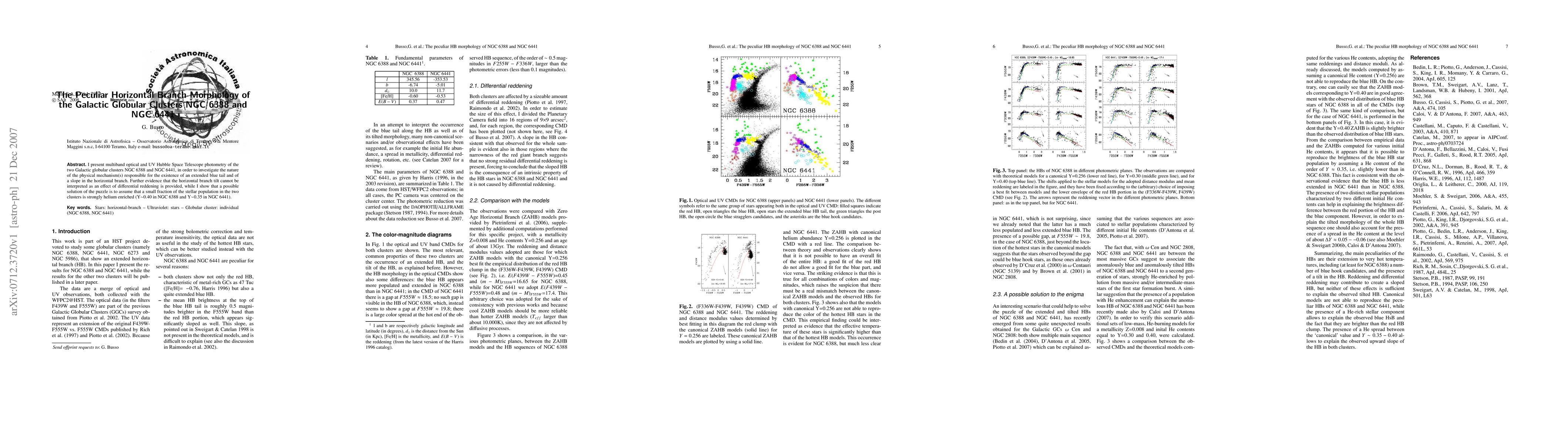 I present multiband optical and UV Hubble Space Telescope photometry of the two Galactic globular clusters NGC6388 and NGC6441, in order to investigate the nature of the physical mechanism(s) responsible for the existence of an extended blue tail and of a slope in the horizontal branch. Further evidence that the horizontal branch tilt cannot be interpreted as an effect of differential reddening is provided, while I show that a possible solution of the puzzle is to assume that a small fraction of the stellar population in the two clusters is strongly helium enriched.