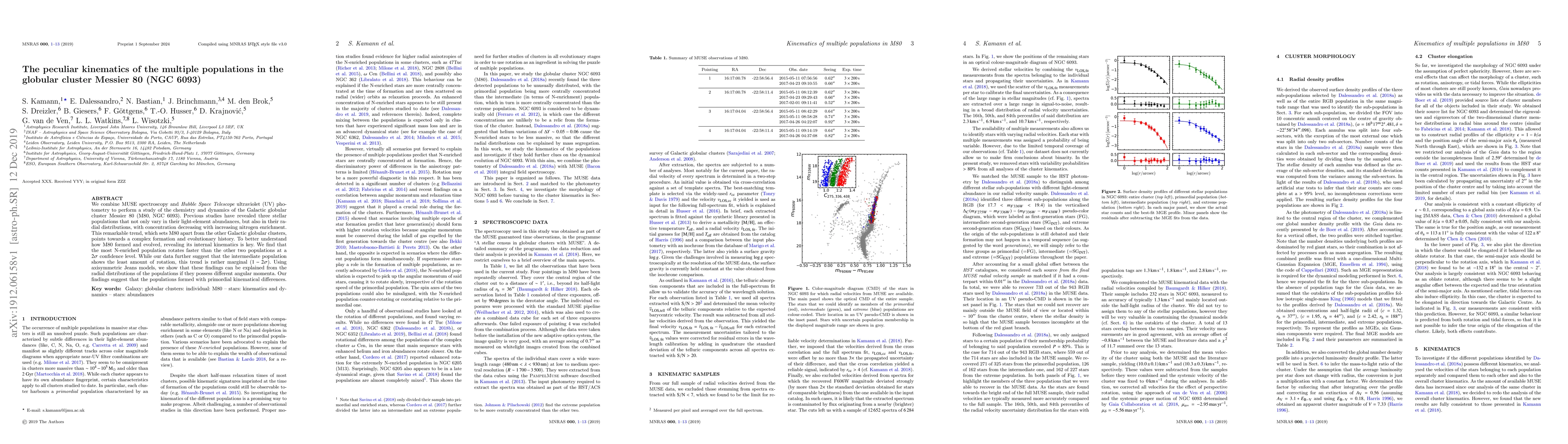 We combine MUSE spectroscopy and Hubble Space Telescope ultraviolet (UV) photometry to perform a study of the chemistry and dynamics of the Galactic globular cluster Messier 80 (M80, NGC 6093). Previous studies have revealed three stellar populations that not only vary in their light-element abundances, but also in their radial distributions, with concentration decreasing with increasing nitrogen enrichment. This remarkable trend, which sets M80 apart from the other Galactic globular clusters, points towards a complex formation and evolutionary history. To better understand how M80 formed and evolved, revealing its internal kinematics is key. We find that the most N-enriched population rotates faster than the other two populations at a 2 sigma confidence level. While our data further suggest that the intermediate population shows the least amount of rotation, this trend is rather marginal (1 - 2 sigma). Using axisymmetric Jeans models, we show that these findings can be explained from the radial distributions of the populations if they possess different angular momenta. Our findings suggest that the populations formed with primordial kinematical differences.