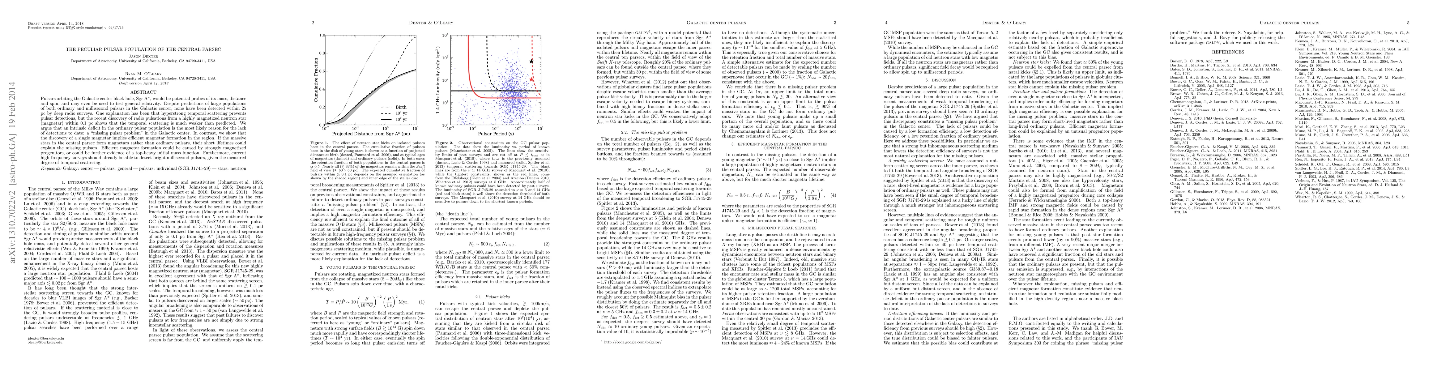 This paper discusses the "missing pulsar problem" in the central parsec of the Milky Way, where no ordinary pulsars have been detected despite predictions. The discovery of a magnetar suggests that the scattering of signals is not the issue, and posits that a deficit in ordinary pulsars, possibly due to massive stars forming magnetars instead, could explain the absence.
