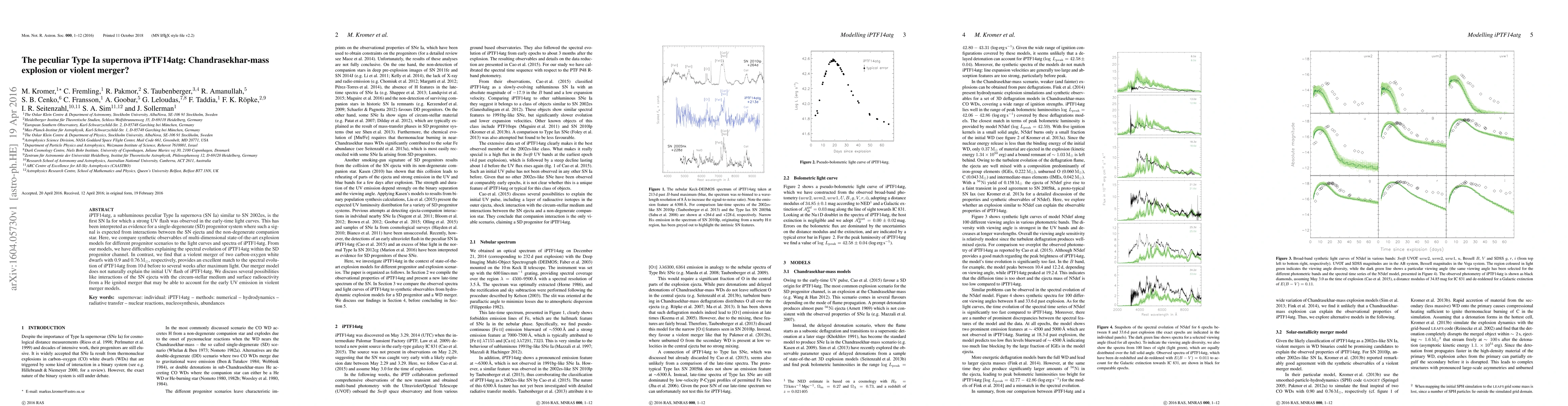 iPTF14atg is a peculiar subluminous Type Ia supernova with an unusual early UV flash, challenging the single-degenerate progenitor model. A violent merger of two carbon-oxygen white dwarfs provides a better fit to its spectral evolution, though it does not explain the initial UV flash.
