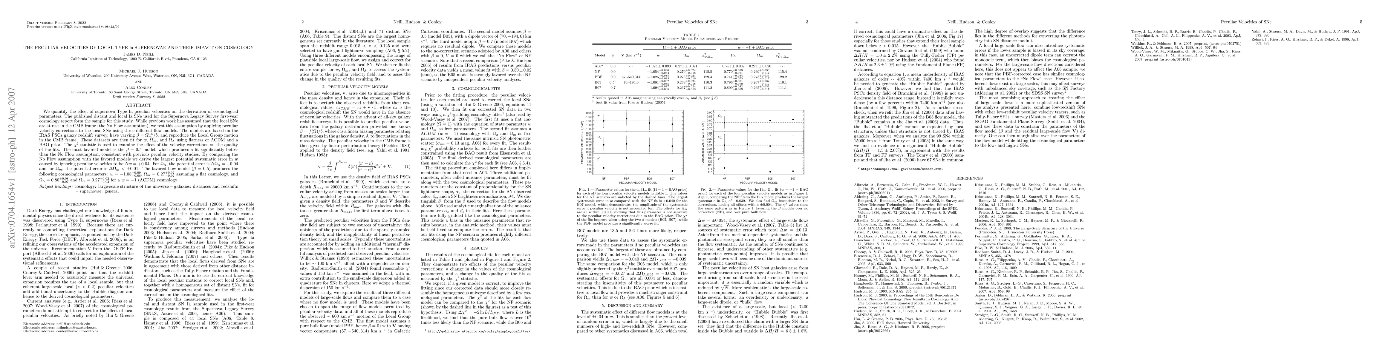 This paper investigates the impact of peculiar velocities of local Type Ia supernovae on cosmological parameter estimation, finding that correcting for these velocities significantly improves model fits compared to the No Flow assumption. The favored model (beta=0.5) suggests a systematic error in w of +0.04, with smaller errors in Omega_Lambda and Omega_m.