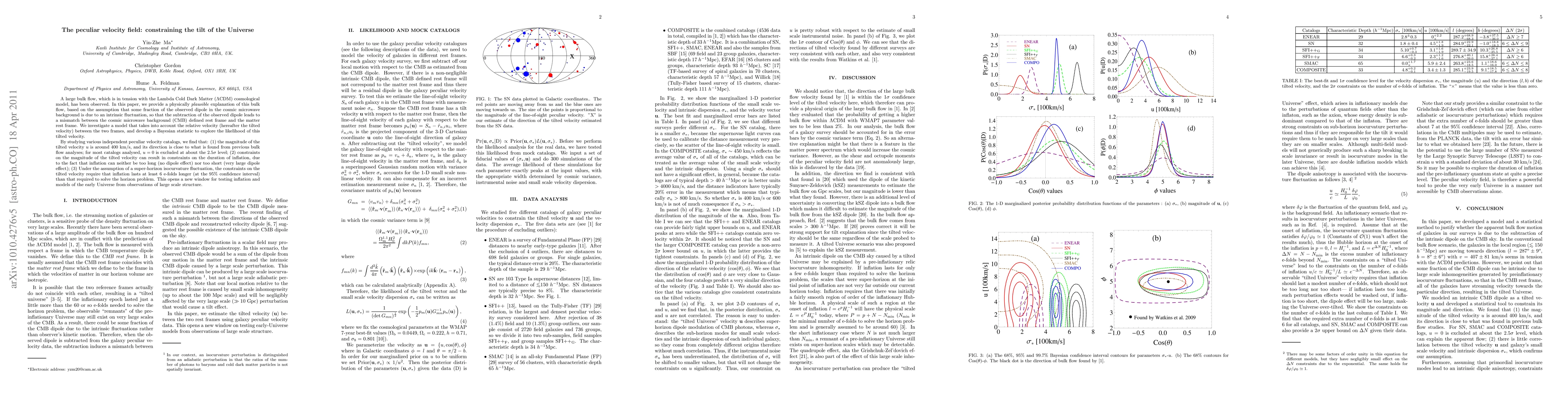 A large bulk flow, which is in tension with the Lambda Cold Dark Matter ($\Lambda$CDM) cosmological model, has been observed. In this paper, we provide a physically plausible explanation of this bulk flow, based on the assumption that some fraction of the observed dipole in the cosmic microwave background is due to an intrinsic fluctuation, so that the subtraction of the observed dipole leads to a mismatch between the cosmic microwave background (CMB) defined rest frame and the matter rest frame. We investigate a model that takes into account the relative velocity (hereafter the tilted velocity) between the two frames, and develop a Bayesian statistic to explore the likelihood of this tilted velocity. By studying various independent peculiar velocity catalogs, we find that: (1) the magnitude of the tilted velocity $u$ is around 400 km/s, and its direction is close to what is found from previous bulk flow analyses; for most catalogs analysed, u=0 is excluded at about the $2.5 \sigma$ level;(2) constraints on the magnitude of the tilted velocity can result in constraints on the duration of inflation, due to the fact that inflation can neither be too long (no dipole effect) nor too short (very large dipole effect); (3) Under the assumption of a super-horizon isocurvature fluctuation, the constraints on the tilted velocity require that inflation lasts at least 6 e-folds longer (at the 95% confidence interval) than that required to solve the horizon problem. This opens a new window for testing inflation and models of the early Universe from observations of large scale structure.