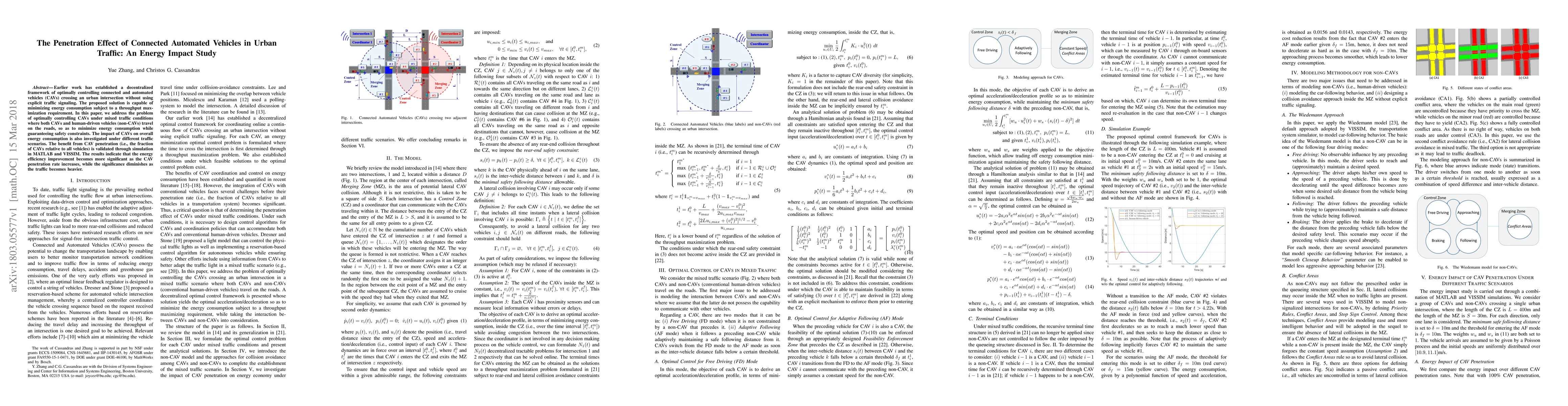 Earlier work has established a decentralized framework of optimally controlling connected and automated vehicles (CAVs) crossing an urban intersection without using explicit traffic signaling. The proposed solution is capable of minimizing energy consumption subject to a throughput maximization requirement. In this paper, we address the problem of optimally controlling CAVs under mixed traffic conditions where both CAVs and human-driven vehicles (non-CAVs) travel on the roads, so as to minimize energy consumption while guaranteeing safety constraints. The impact of CAVs on overall energy consumption is also investigated under different traffic scenarios. The benefit from CAV penetration (i.e., the fraction of CAVs relative to all vehicles) is validated through simulation in MATLAB and VISSIM. The results indicate that the energy efficiency improvement becomes more significant as the CAV penetration rate increases, while the significance diminishes as the traffic becomes heavier